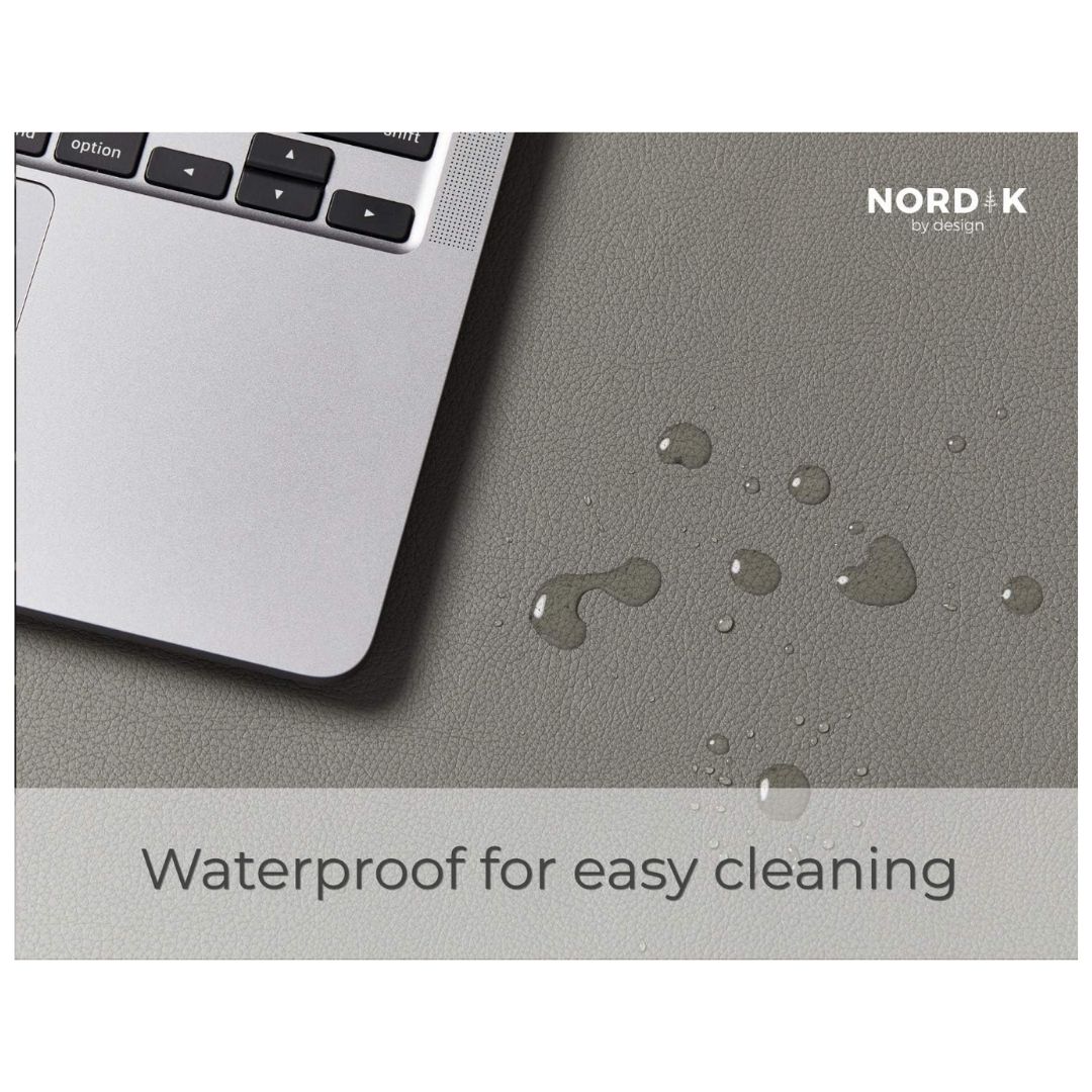 Nordik Leather Desk Mat PST-LPDM berbahan vegan leather tahan lama, anti-gores, dilengkapi suede anti-slip dan kabel organizer. Elegan dan eksklusif, cocok untuk meja kerja atau hadiah.
