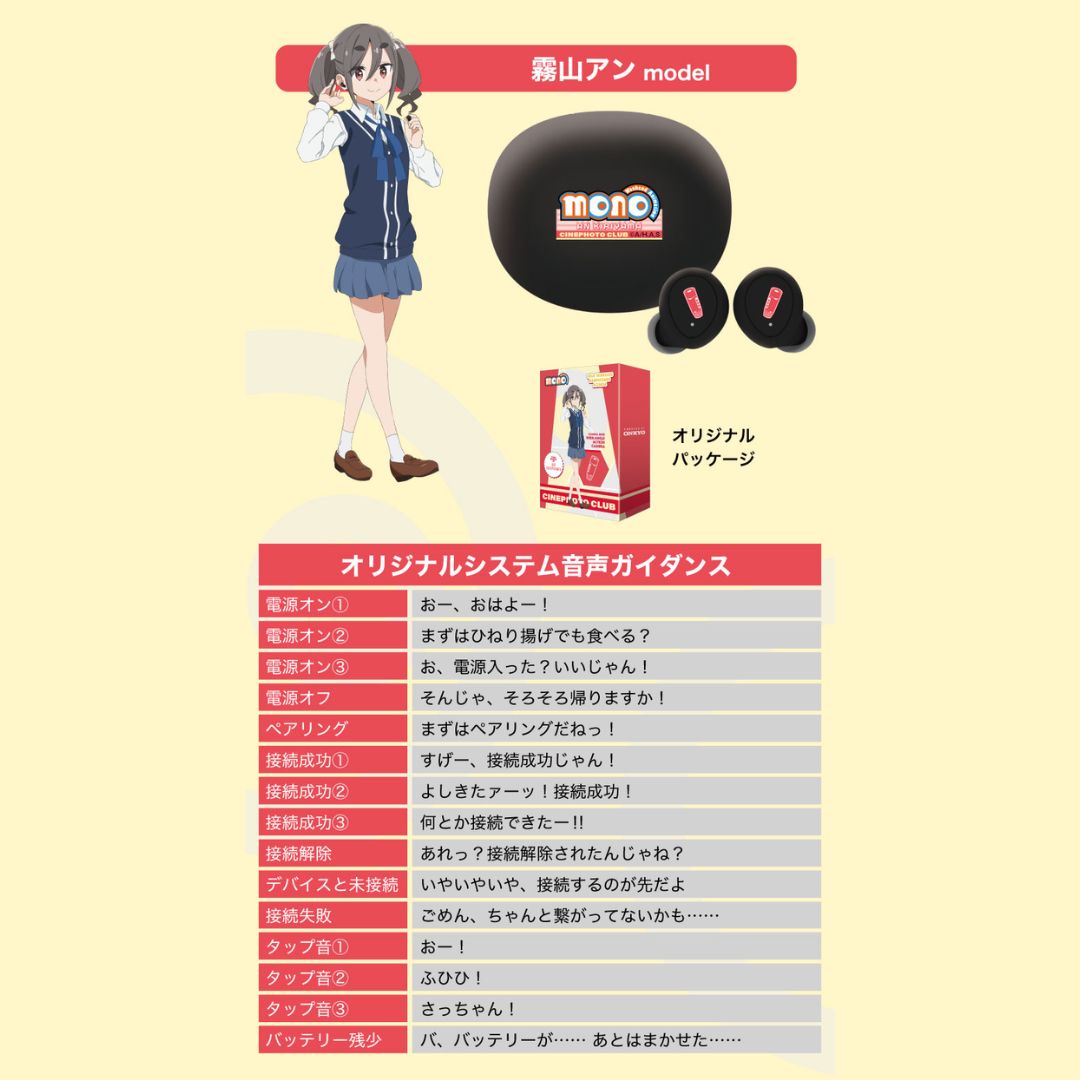 AOW04 adalah earphone true wireless edisi kolaborasi antara Onkyo x MONO ANIMA yang dilengkapi dengan sistem suara karakter Amemiya Satsuki, Kiriyama Ann, dan Sakurako Shikishima.