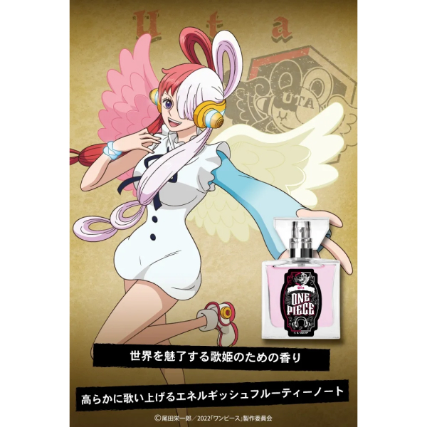 Parfum ini terinspirasi dari karakter Uta, seorang wanita penuh impian dan harapan. Dengan aroma buah raspberry yang manis dan asam, dipadukan dengan jeruk yang segar, parfum ini memancarkan aura ceria dan penuh pesona. Aroma freesia dan lotus menambah kelembutan feminin di tengah-tengah. Cedarwood dan sandalwood pada lapisan terakhir memberikan sentuhan mendalam, menciptakan harmoni antara kesegaran dan kehangatan.