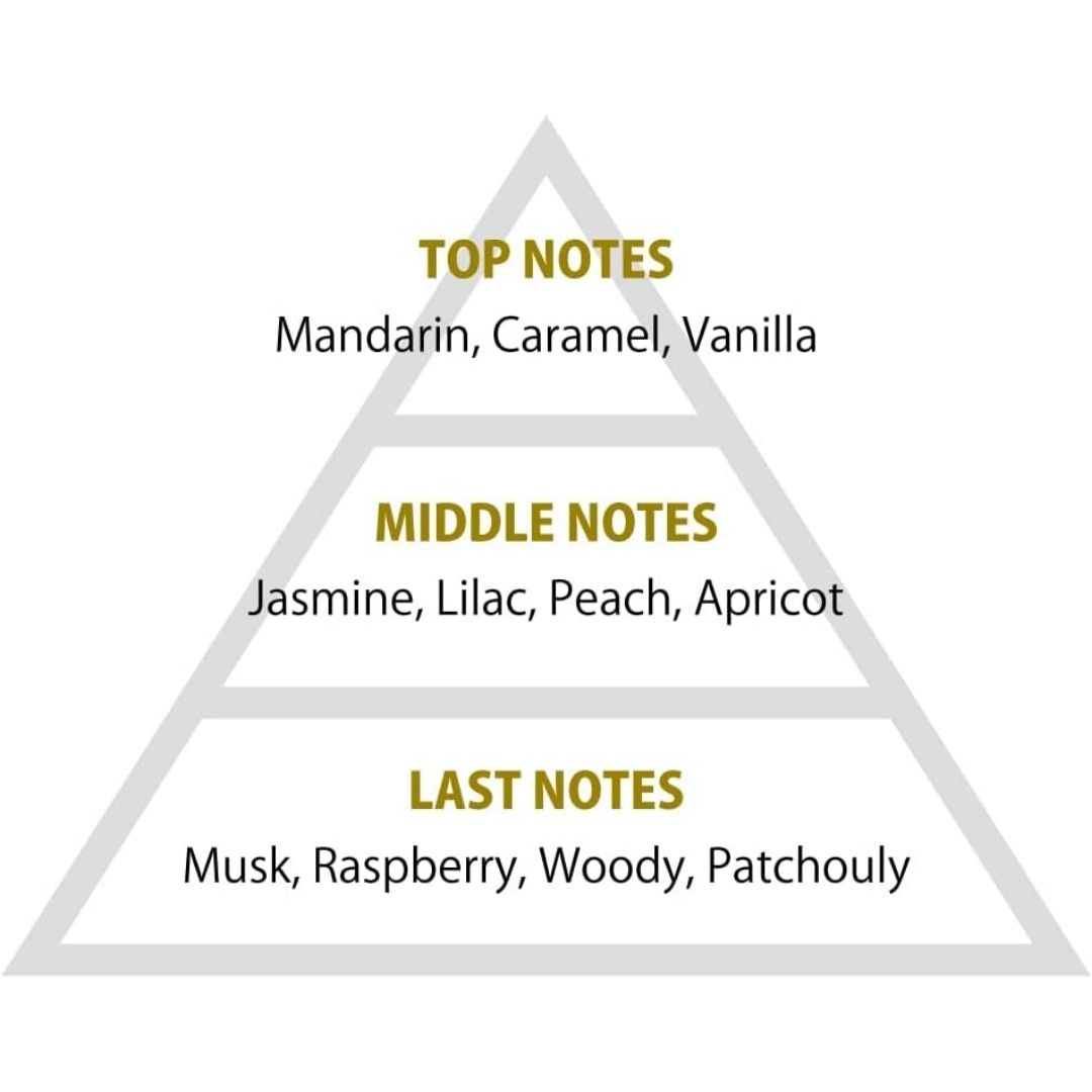 - Top Notes: Mandarin, Caramel, Vanilla – Aroma manis dan segar, memberikan kesan awal yang menyenangkan.
