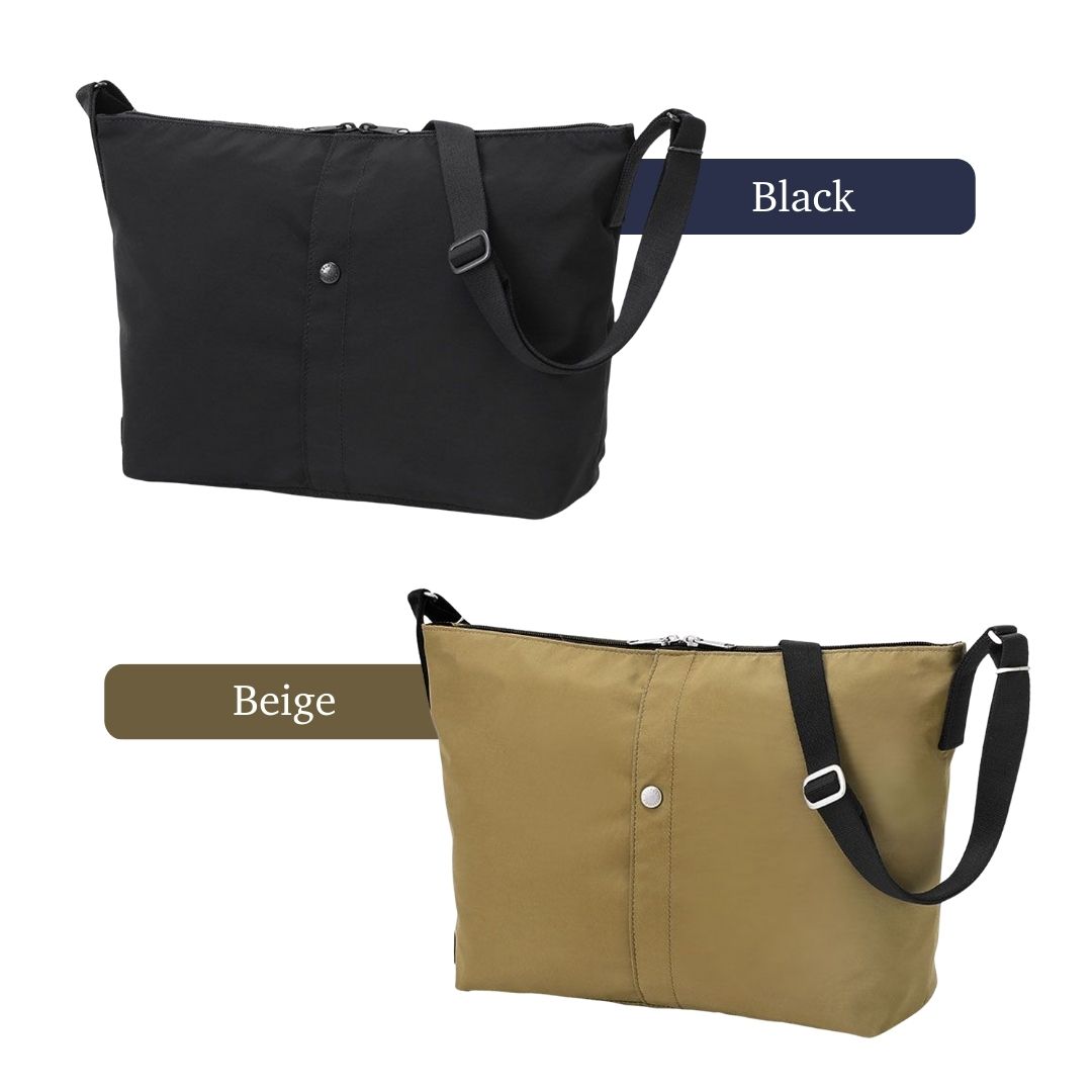 PORTER 2 Shoulder Bag M berbahan 60/40 cotton-nylon, ringan, tahan air, dan fungsional. Kantong magnetik depan & belakang plus interior oranye memudahkan akses dan pengorganisasian, ideal untuk aktivitas harian dan outdoor ringan.