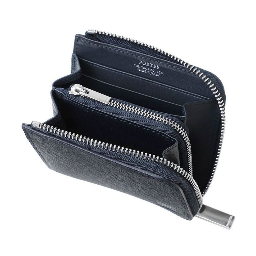 PORTER ABLE Wallet dirancang ramping untuk kartu, uang kertas minimal, dan koin, menggunakan kulit sapi impor Italia beremboss presisi dengan ritsleting Excella yang elegan dan praktis untuk penggunaan harian.
