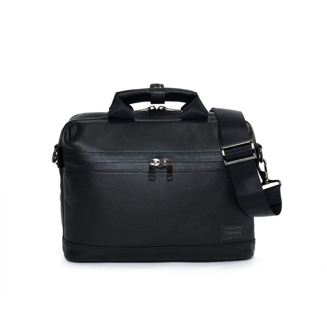 PORTER GUARD 2WAY BRIEFCASE memadukan kulit sapi domestik ber-Scotchgard 3M, resleting waterproof YKK AquaGuard, dan metal fittings black nickel. Desain 2-arah (jinjing/selempang) membuatnya stylish dan praktis untuk mobilitas bisnis harian.