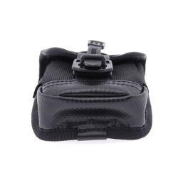 Pouch ini dibuat menggunakan nilon barrister buatan Jepang yang ditenun dengan benang nilon 66 – material yang sama kuatnya dengan yang digunakan pada kantung udara mobil dan rompi anti peluru. Ini menjamin ketahanan panas, abrasi, dan kekuatan sobek yang luar biasa. Beberapa bagian pouch juga menggunakan kain terpal yang sangat tahan air, material industri yang dikenal karena ketangguhannya. Meskipun tampil dalam warna hitam one-tone, pouch ini memiliki desain yang cerdas dengan kontras tekstur antar kain, menciptakan tampilan yang menarik dan dinamis.