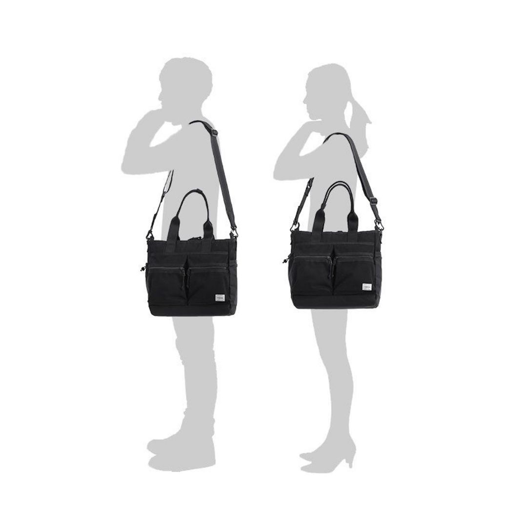Porter Switch 2Way Tote Bag (S) tampil clean all black dengan fungsi 2Way yang fleksibel. Cotton surge water-repellent melindungi barang, dilengkapi struktur kokoh dan reflektor PORTER untuk visibilitas malam. Desain unisex siap untuk kerja dan daily use.