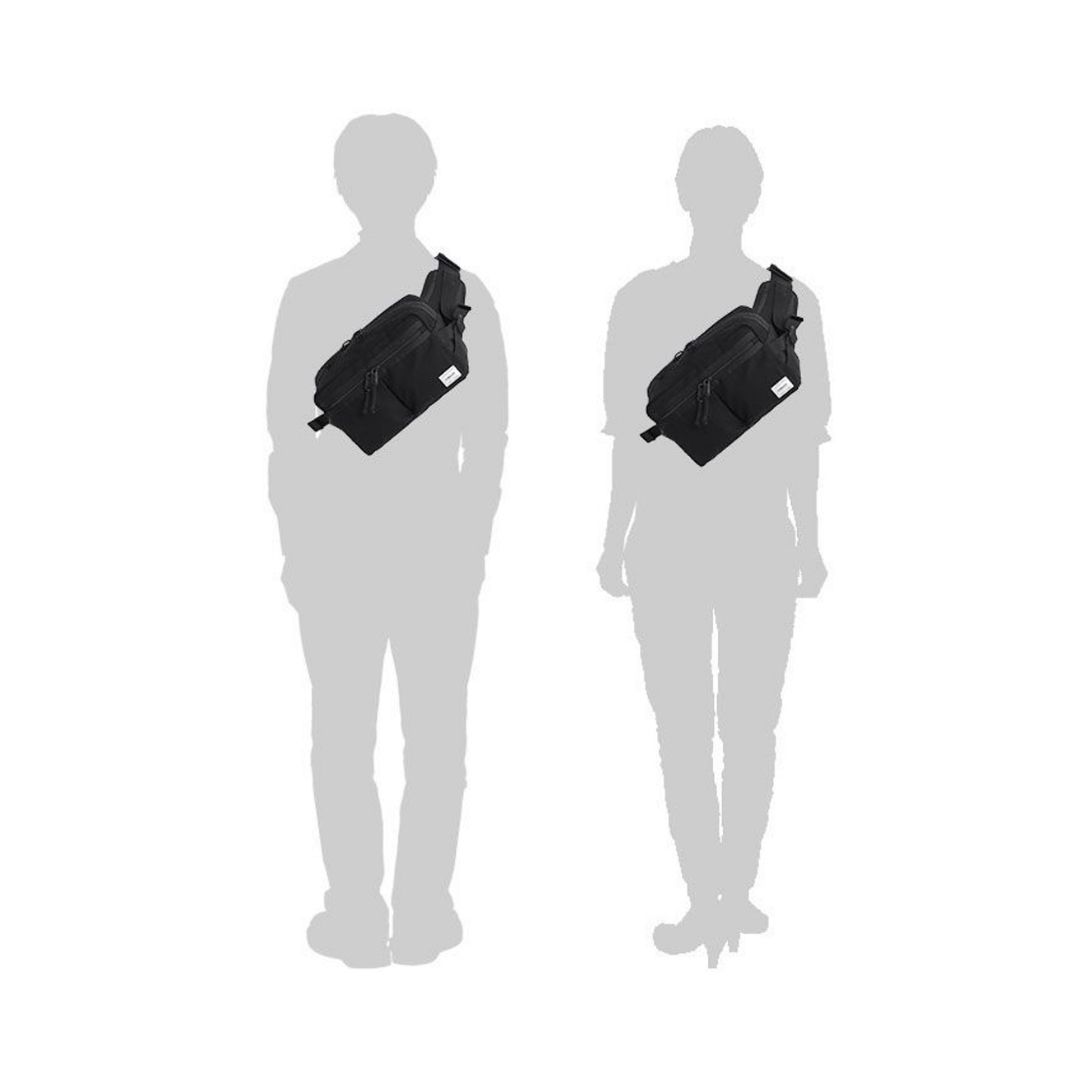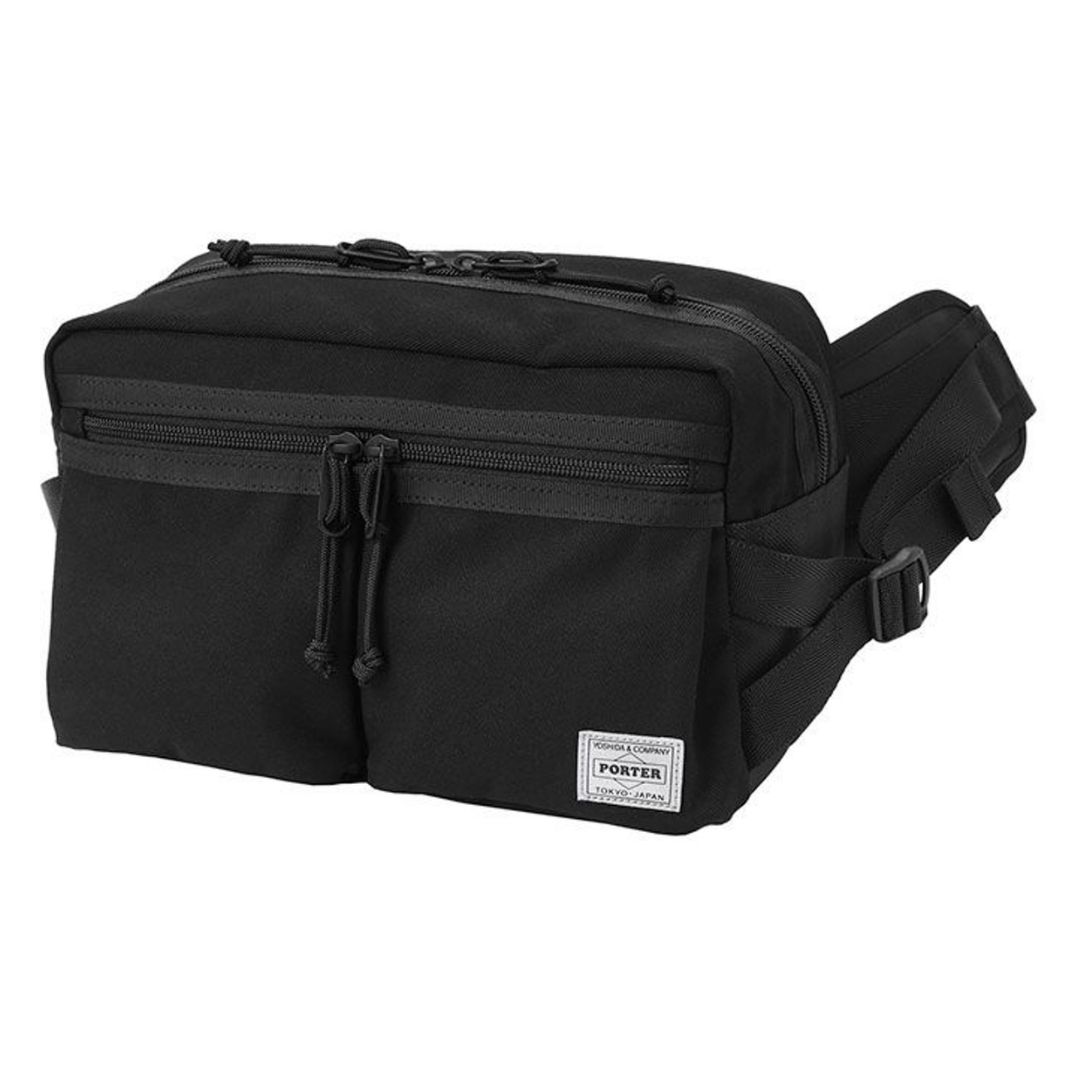 Porter Switch Waist Bag ringkas, all-black, dan water-repellent, terbuat dari Cotton Surge & GAIFU, ideal untuk aktivitas harian maupun festival.
