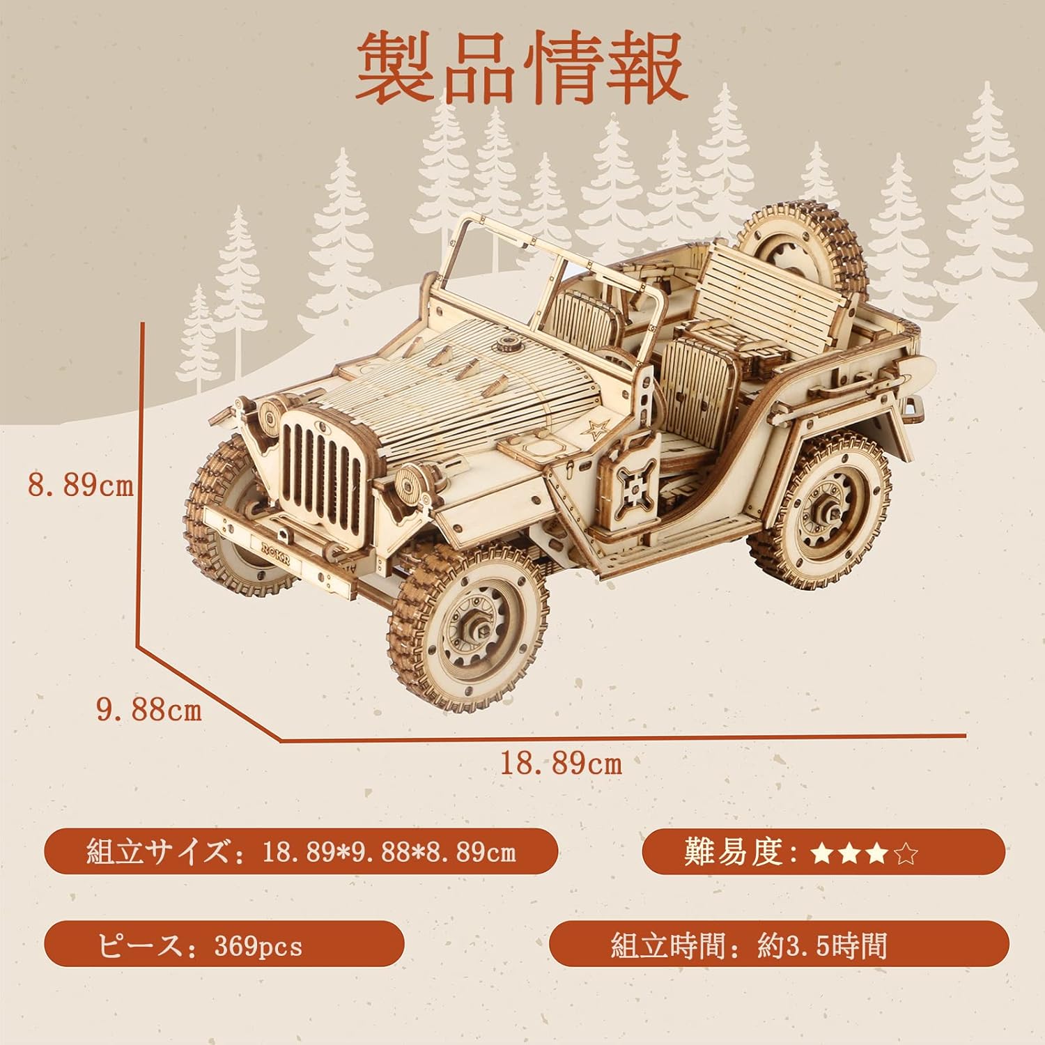 Robotime 3D立体パズル 木製パズル 木製 レーザーカット ギア ミニチュア オモチャ 知育玩具 男の子 女の子 大人 入園祝い 新年 ギフト 誕生日 クリスマス プレゼント 贈り物(ジープ)