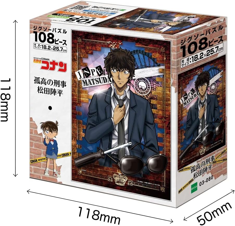 Epoch Company 108 Piece Jigsaw Puzzle Detective Conan Jinpei Matsuda adalah sebuah puzzle gambar yang terdiri dari 108 potongan. Puzzle ini menampilkan karakter populer dari anime Detective Conan, yaitu detektif Jinpei Matsuda, seorang polisi muda yang cerdas dan berdedikasi.