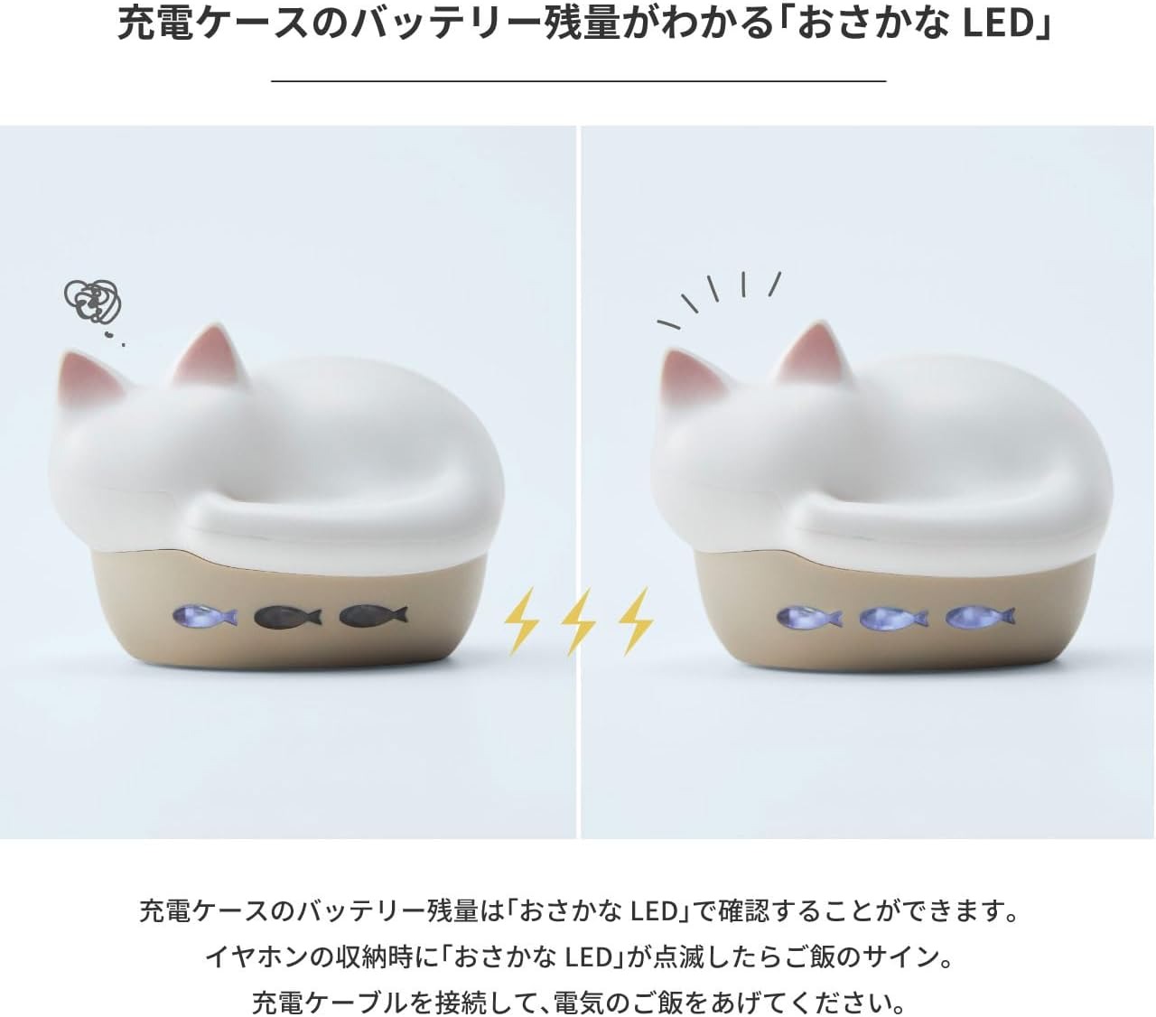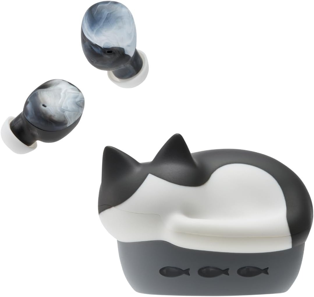 - Desain Unik: Dilengkapi dengan casing pengisi daya berbentuk kucing dengan pola marmer yang unik.