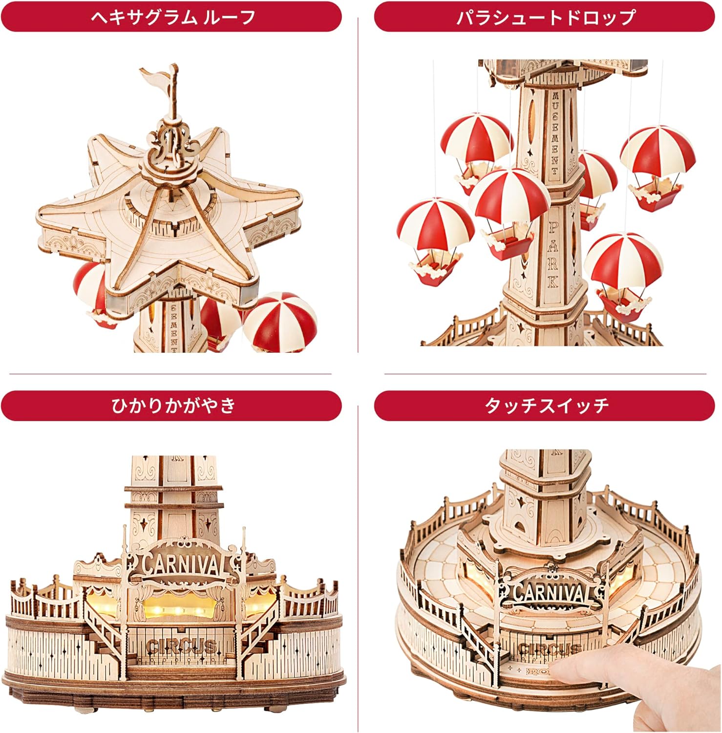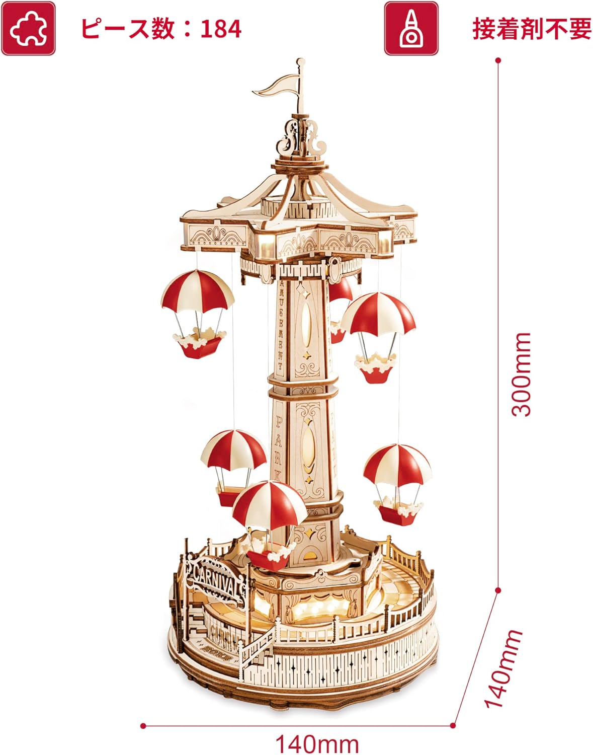 Robotime 立体パズル 木製 ウッド 3d パズル DIY 手つくりキット オルゴール 子供 大人 向け おもちゃ 14歳+ 遊園地 模型 クラフト 工作キット 誕生日プレゼント ギフト 知育玩具 インテリア おしゃれ 2022最新 (パラシュートタワー)