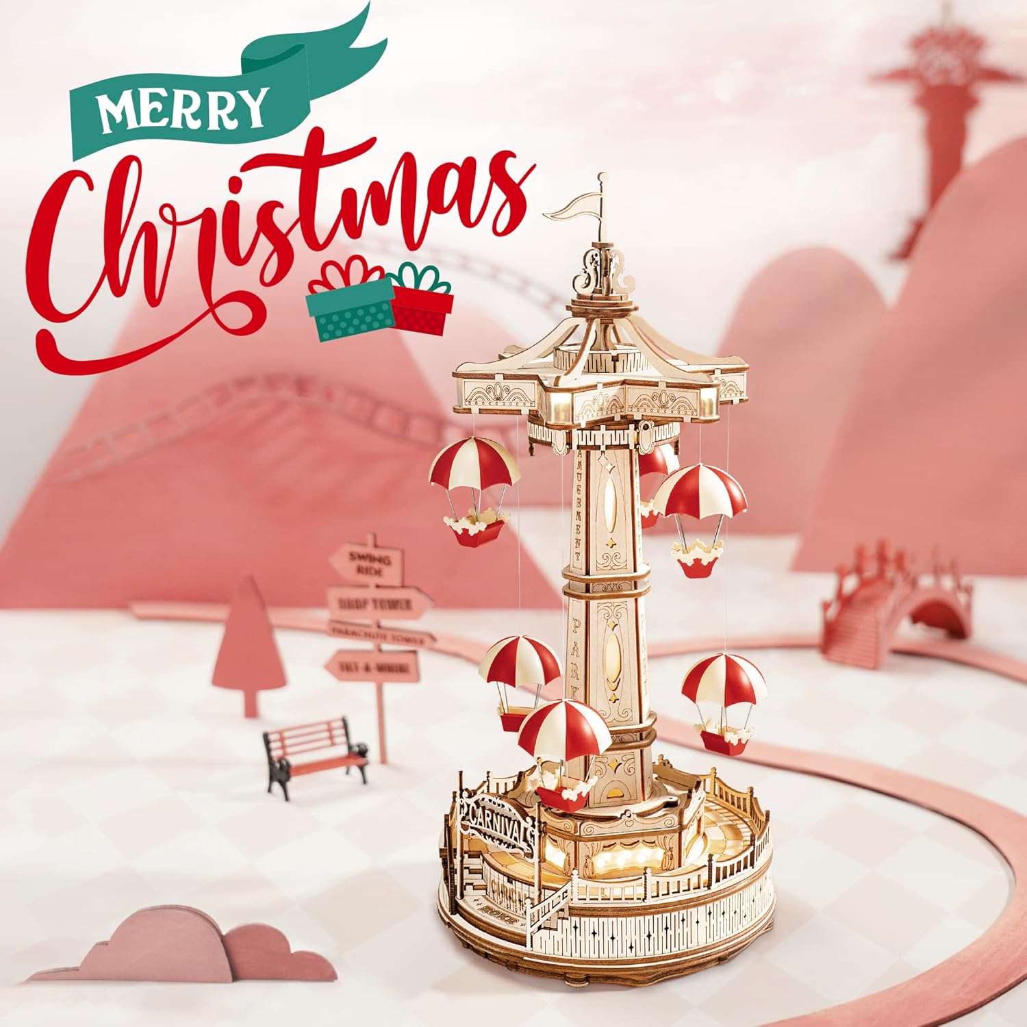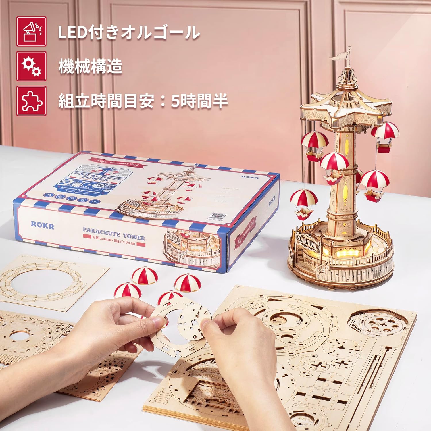 Robotime 3D Puzzle, Wooden, 3D Puzzle, DIY, Handmade Kit, Music Box, Toy for Kids and Adults, Ages 14+, Amusement Park, Model, Craft, Craft Kit, Birthday Present, Gift, Educational Toy, Interior, Stylish, 2022 Latest (Parachute Tower)