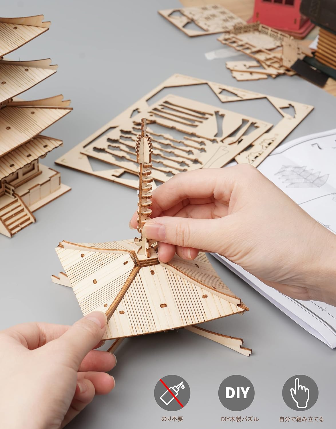 Robotime 立体パズル 木製パズル 3dパズル 工作キット DIY クラフト 模型製作キットおもちゃ 知育玩具 子供 大人 ギフト 誕生日 クリスマス プレゼント 最高の贈り物 法隆寺 五重の塔
