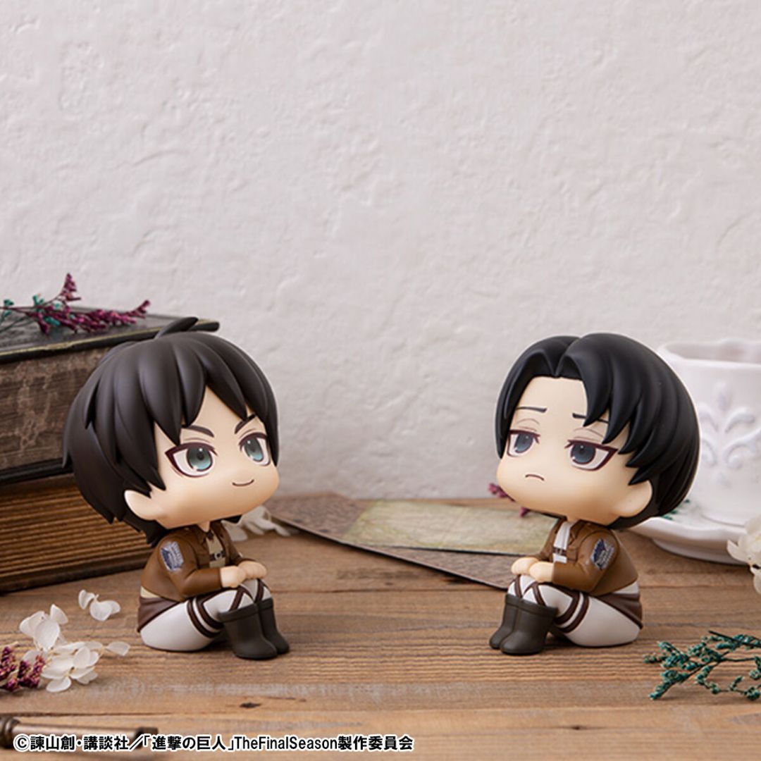 Rukappu Attack on Titan Eren Yeager & Levi Set hadir dengan desain unik “looking up” yang lucu dan menggemaskan. Set ini menampilkan figur Eren Yeager dan Levi dalam pose duduk sambil menatap ke atas, memberikan kesan interaktif saat ditempatkan di meja Anda.