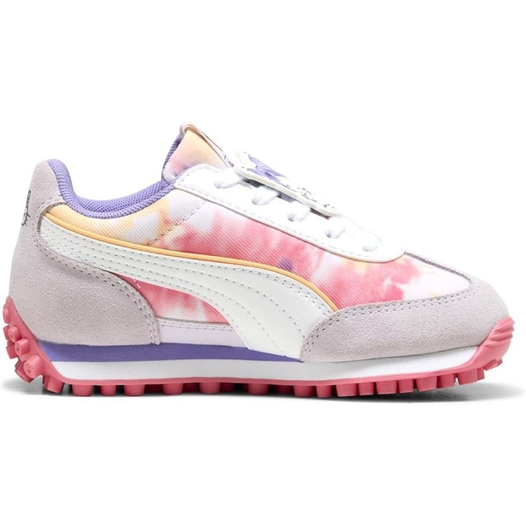 Sepatu Puma Girls Hello Kitty Easy Rider adalah kolaborasi eksklusif Puma dengan Hello Kitty & Friends yang memadukan desain retro khas tahun 90-an dan nuansa ceria khas karakter Sanrio. Varian warna Lilac Frost/Puma White/Magic Rose menghadirkan kesan manis dan penuh keceriaan.
