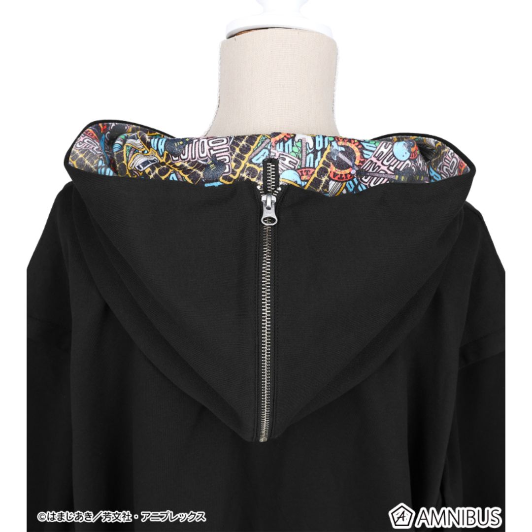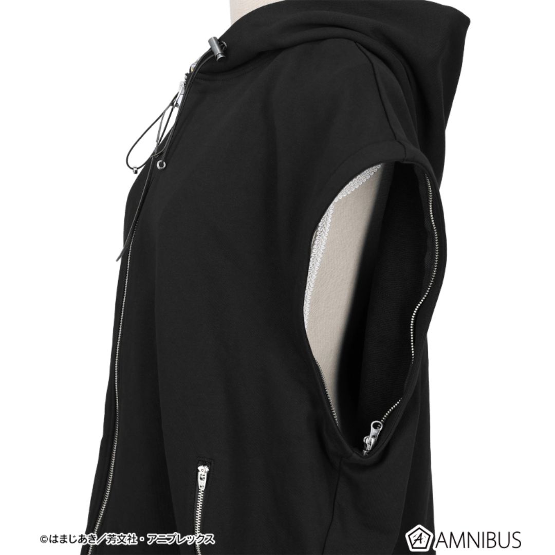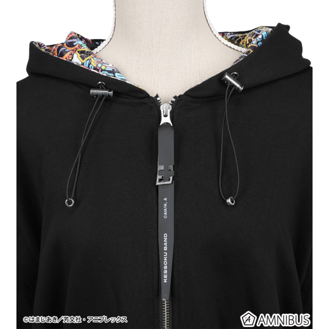 - Fitur Tambahan: Lengan dapat dilepas dengan zipper (menjadi vest), decal print instrumen anggota Kessoku Band di bagian dalam hood, synthetic leather band pada zipper depan.