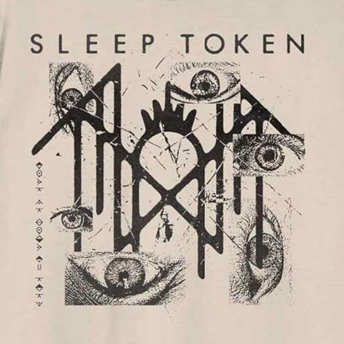Bayangkan bagaimana desain logo band Sleep Token yang khas, dengan fokus pada motif mata yang mengawasi, tercetak dengan kualitas tinggi di atas t-shirt berwarna natural yang lembut. Kombinasi warna alami dengan simbolisme yang kuat menciptakan tampilan yang unik dan menarik, membedakan Anda dari keramaian.