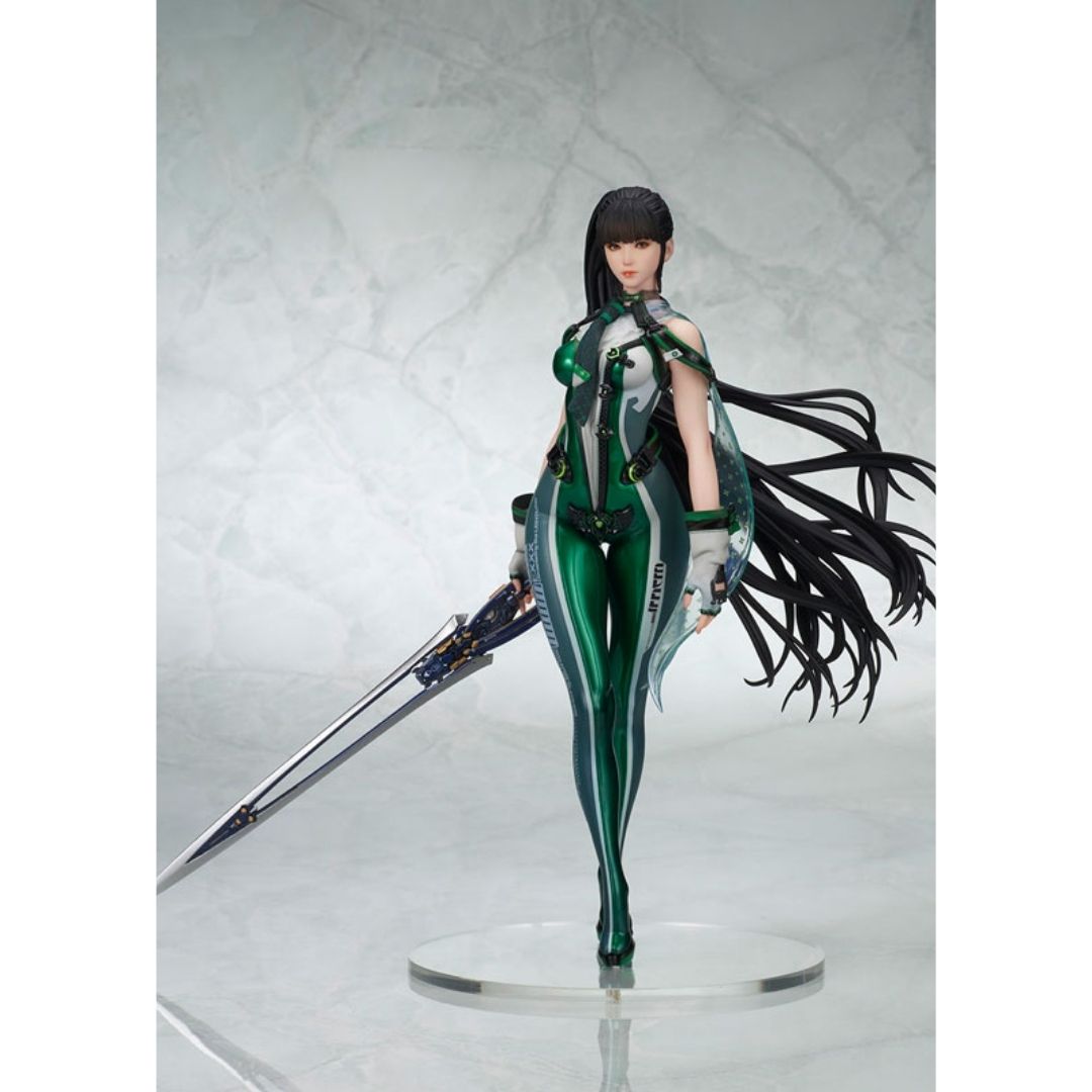 Figur Stellar Blade Eve ini menghadirkan sosok protagonis Stellar Blade dalam pose berdiri yang anggun namun penuh ketegasan. Detail Planet Dive Suit dan senjata Bloodedge dibuat presisi, memberikan kesan heroik yang kuat dari setiap sudut pandang.