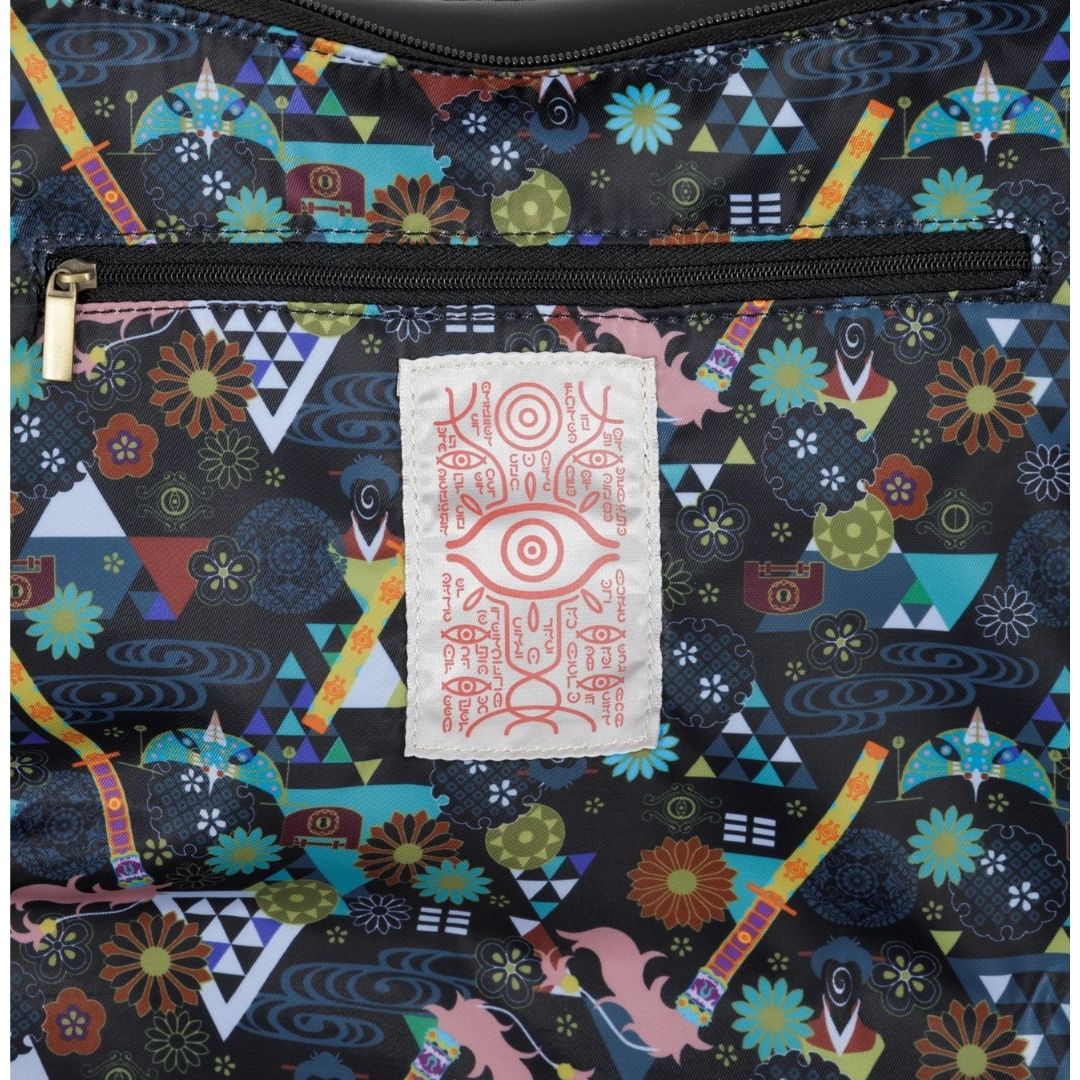 Bagian dalam tas menggunakan tekstil orisinal yang dirancang khusus untuk kolaborasi ini! Berbagai elemen dari “Mononoke the Movie” diekspresikan dalam gaya Jepang modern yang memukau. Anda akan menemukan siluet “pedang pembasmi iblis”, “timbangan”, “cermin” milik Medicine Seller, para pelayan di Ooku, kunci koridor lonceng, dan banyak lagi! Bahkan, saku bagian dalam menampilkan motif “talisman” berwarna merah yang ikonik.
