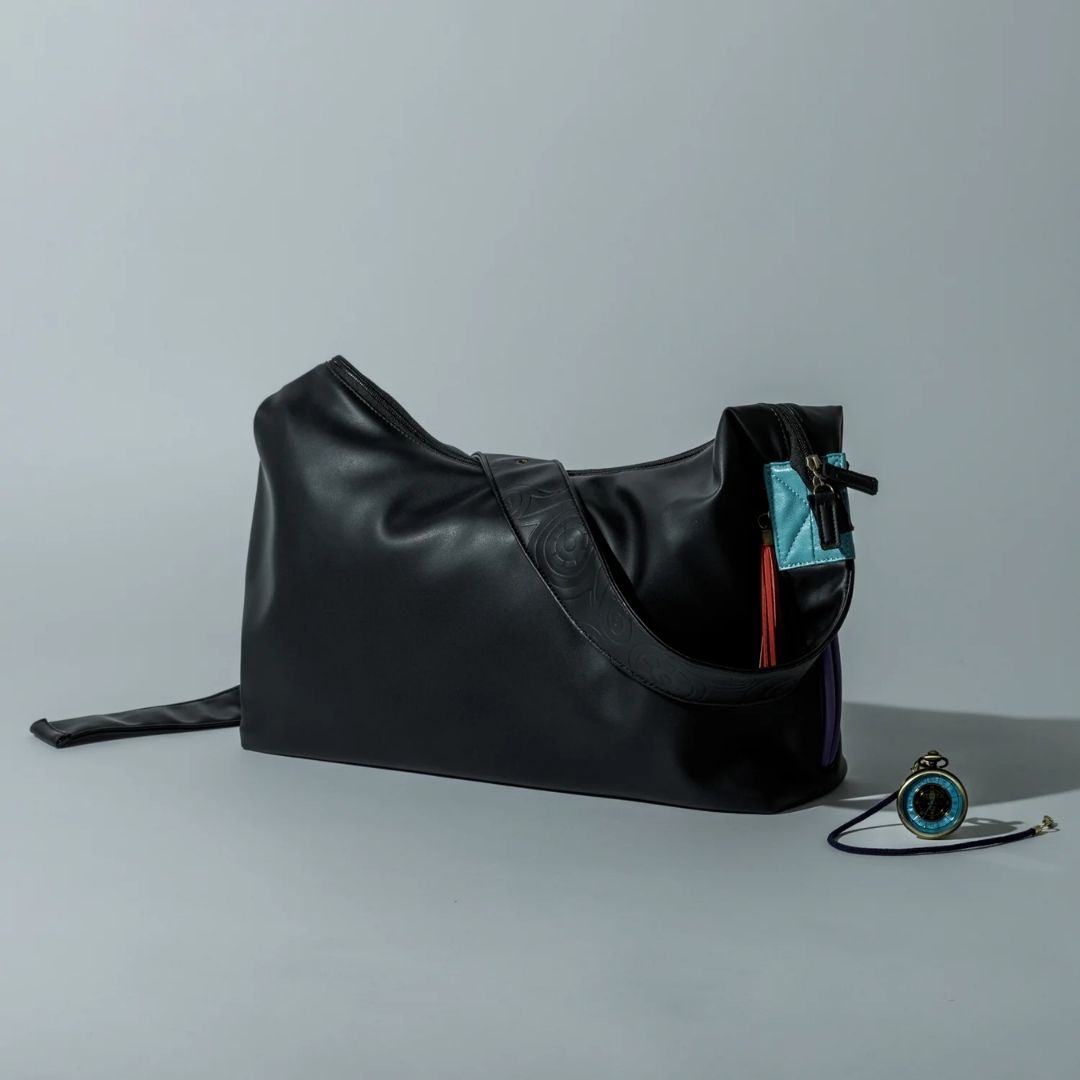 Lengkapi gaya Anda dengan Tas Model Medicine Seller dari kolaborasi eksklusif Super Groupies x Mononoke the Movie! Tas selempang berwarna hitam elegan dengan aksen biru kehijauan yang menarik perhatian ini memiliki bentuk yang lembut dan kapasitas penyimpanan yang luas, menjadikannya ideal untuk berbagai kesempatan.