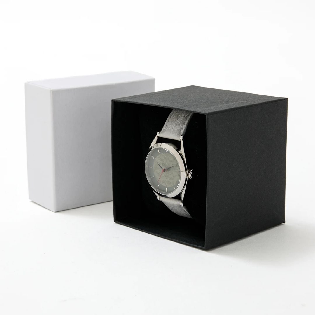 Desainnya yang simpel namun canggih menonjolkan keindahan bermartabat Himezuru Ichimonji dan cocok untuk segala acara. Jam tangan ini akan dikirimkan dalam kotak hitam dan putih yang eksklusif.