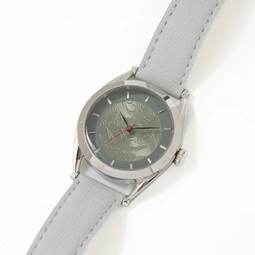 - Pola Pakaian Terukir: Pola dari pakaiannya diukir dengan detail halus pada dial.