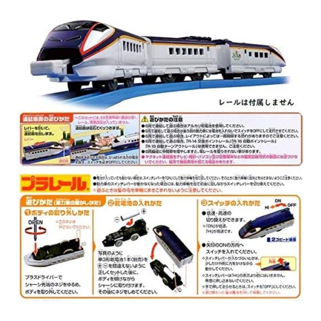 Takara Tomy Plarail E3 Series Shinkansen Tsubasa 2000 Series S-09 menghadirkan replika menawan dari kereta cepat Tsubasa yang ikonik.