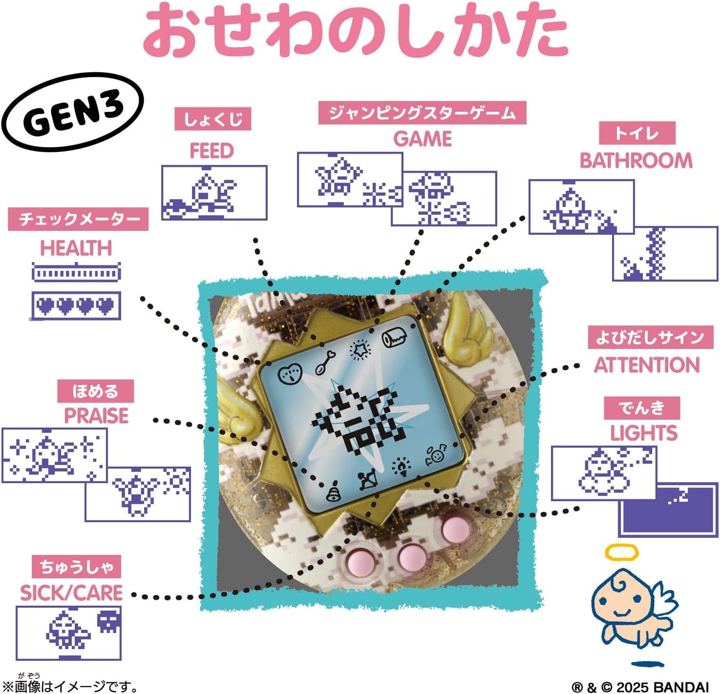 Seperti seri Original Tama gotchi lainnya, edisi Angel Sky ini dilengkapi dengan program GEN3 yang memungkinkan Anda untuk membesarkan Kuriten yang unik dan menggemaskan. 1 Nikmati keseruan memberi makan, membersihkan kotorannya, dan merawatnya saat sakit