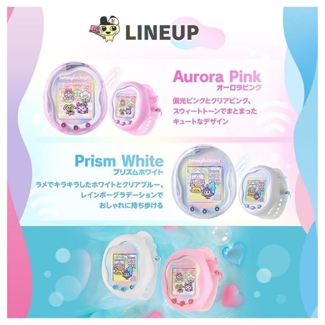 Tamagotchi Uni Aurora Pink Limited Edition hadir dengan desain palm-sized, warna transparan berkilau yang unik, serta dukungan Wi-Fi untuk pengalaman bermain virtual yang modern dan interaktif.