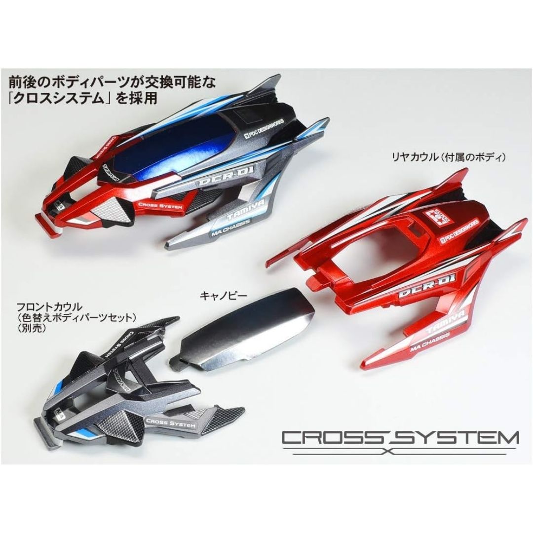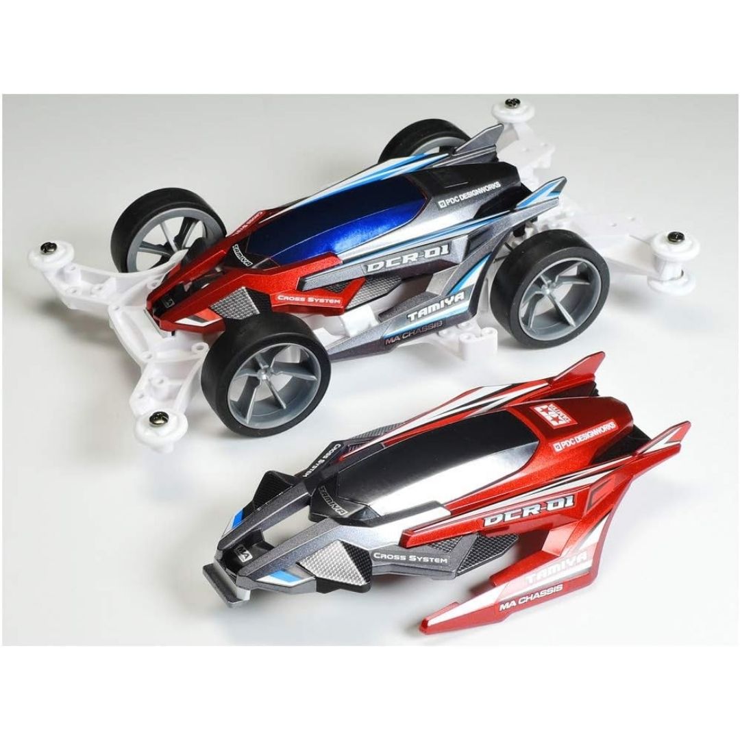 Tamiya DCR-01 hadir sebagai Mini 4WD PRO dengan desain futuristik tiga bagian yang bisa diubah tampilannya, dikombinasikan dengan MA Chassis untuk efisiensi dan kestabilan saat melaju.