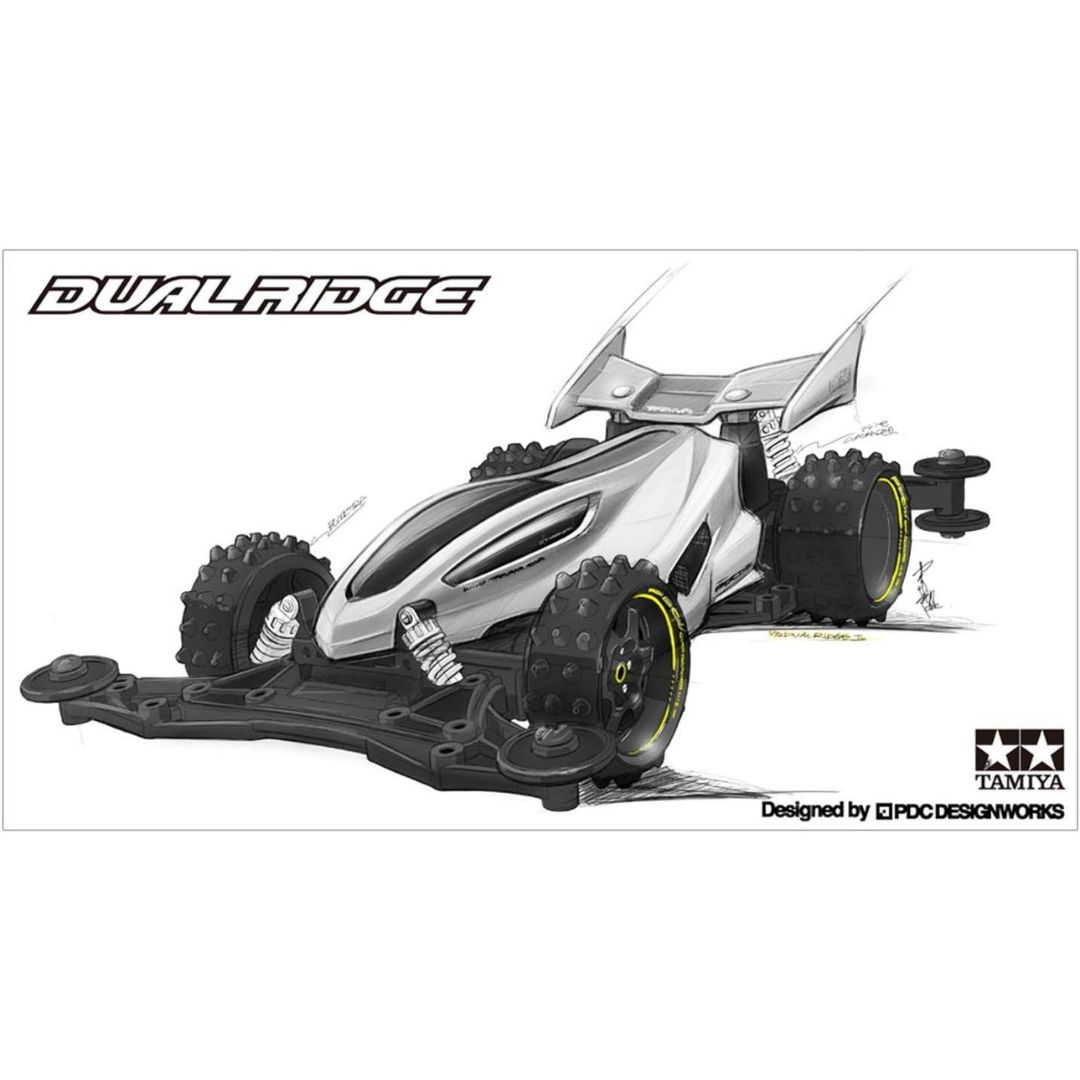 Tamiya Racer Mini Dual Ridge Jr. menghadirkan kombinasi desain bodi streamline yang tajam dengan VZ Chassis generasi terbaru. Dirancang untuk pengguna yang menginginkan Mini 4WD dengan handling stabil, efisiensi gesek rendah, dan setup yang relevan untuk lintasan balap modern.