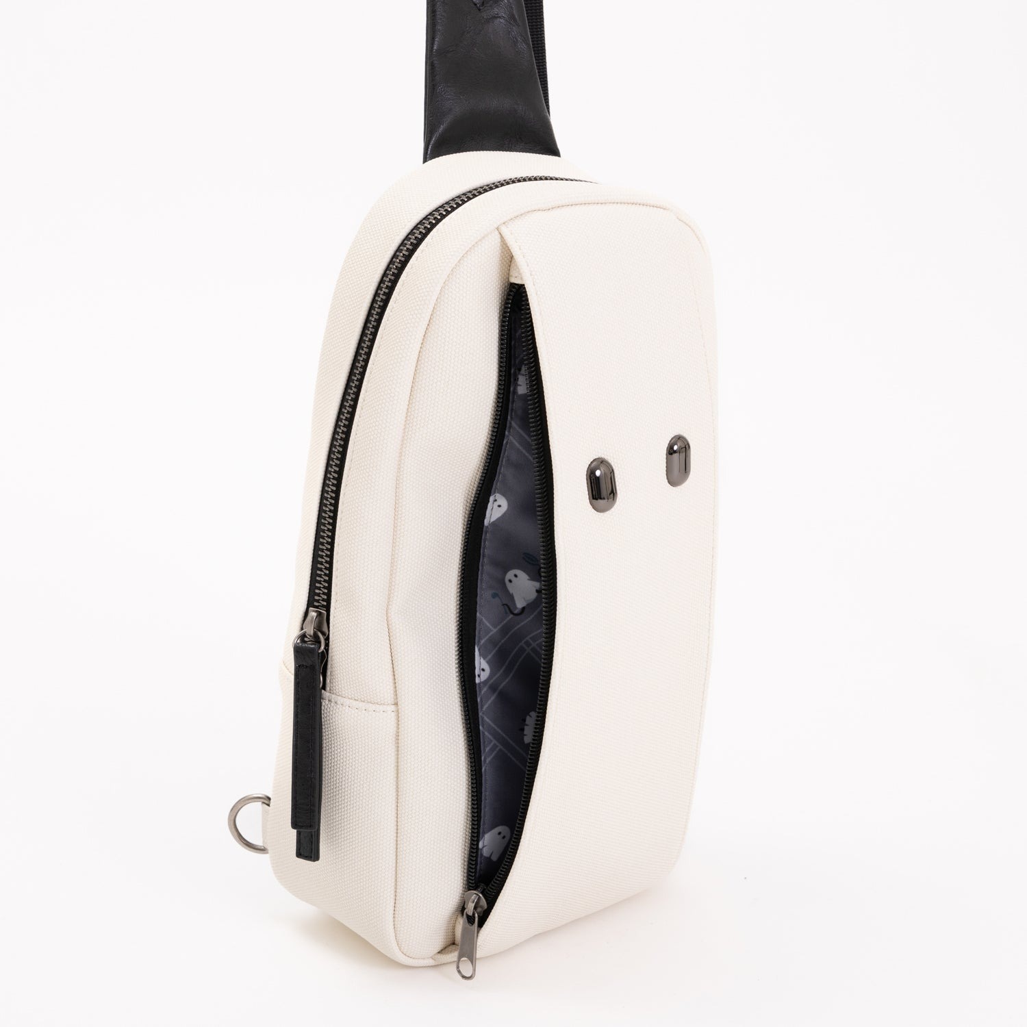 Meskipun terlihat ringkas, tas ini memiliki ruang penyimpanan yang cukup untuk memuat dua botol PET 500ml, serta saku eksterior yang praktis. Titik pesonanya adalah bagian metal bulat yang menyerupai mata Mama, sementara kainnya yang berwarna terang mengingatkan Anda pada sosok Mama.