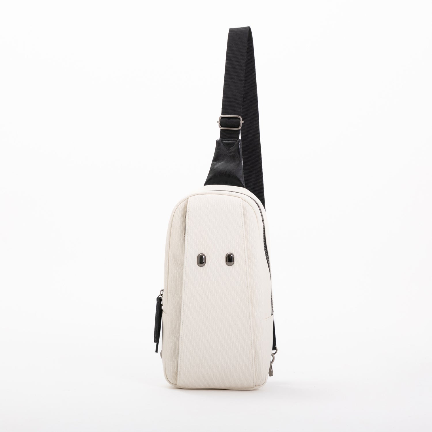 Meskipun terlihat ringkas, tas ini memiliki ruang penyimpanan yang cukup untuk memuat dua botol PET 500ml, serta saku eksterior yang praktis. Titik pesonanya adalah bagian metal bulat yang menyerupai mata Mama, sementara kainnya yang berwarna terang mengingatkan Anda pada sosok Mama.