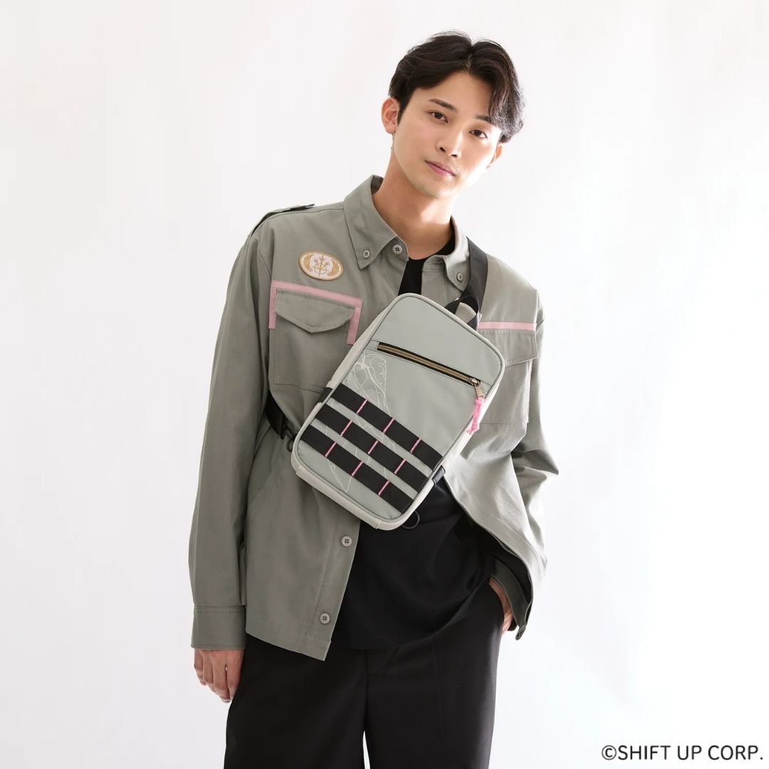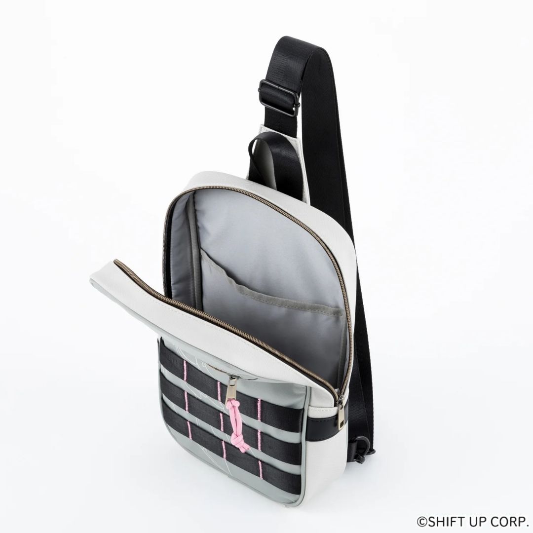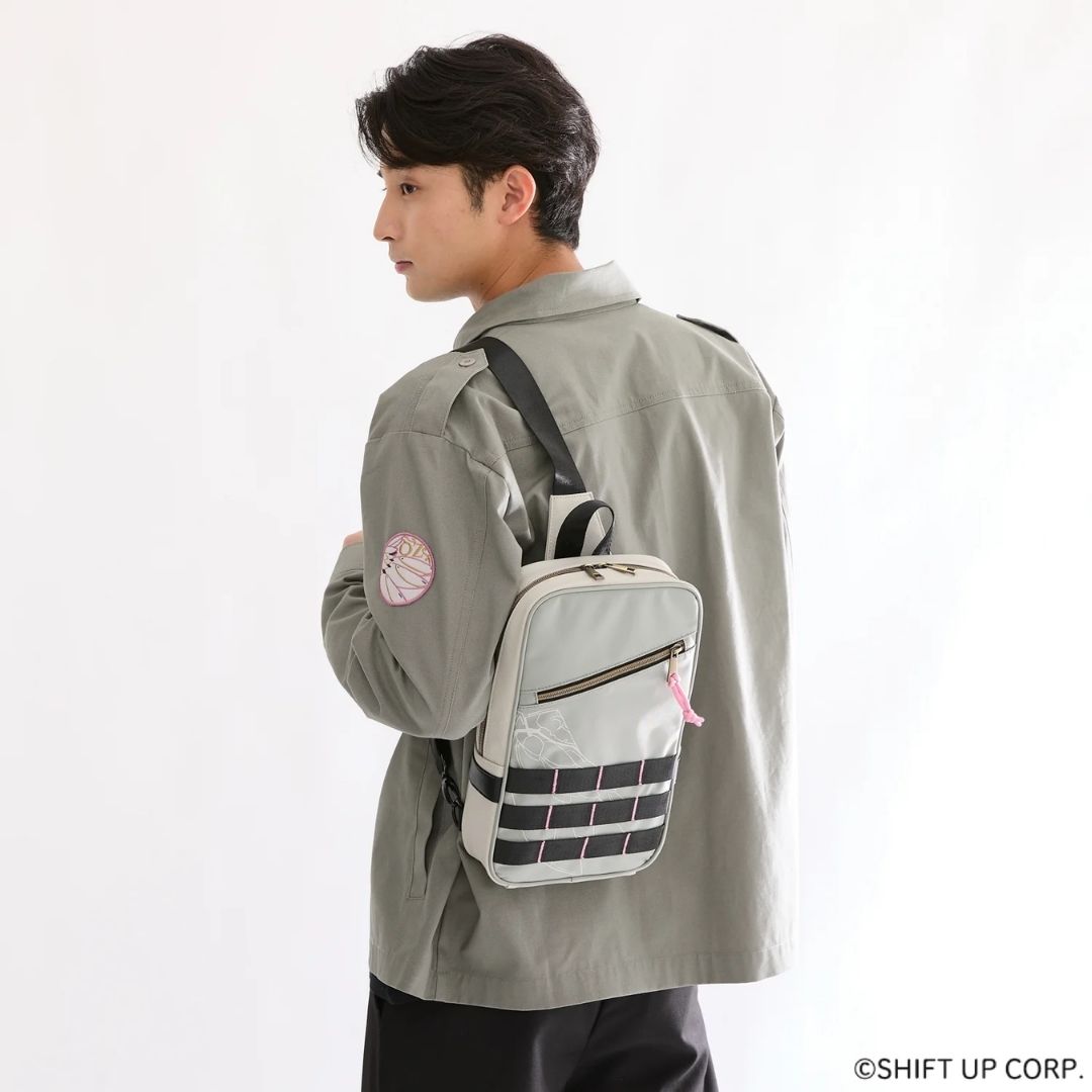 Tas Nikke edisi Dorothy tampil anggun dengan warna abu-abu dan dekorasi sayap di bagian depan. Dilengkapi resleting emas diagonal dan aksen pink lembut, tas ini memadukan kesan stylish dan lembut.