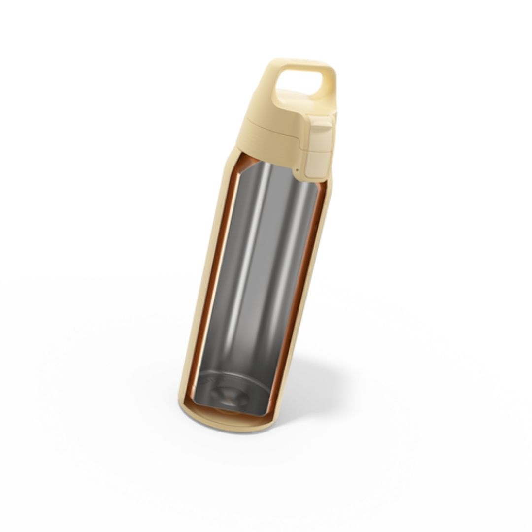 - Desain Ergonomis: Mulut botol yang halus dan mekanisme buka-tutup push-button memudahkan penggunaan dengan satu tangan.