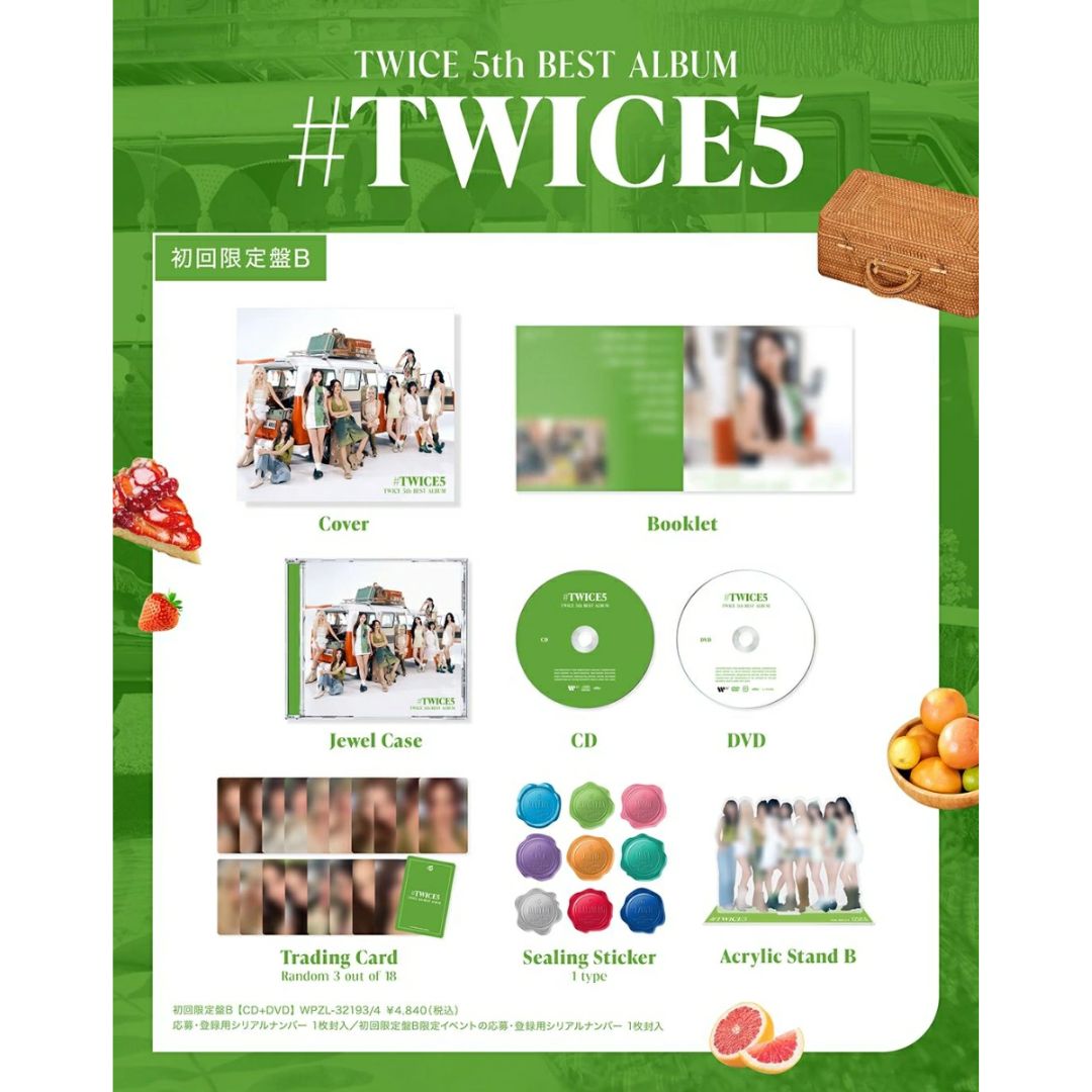 Segera amankan “#TWICE5 (First Limited Edition B)” dan nikmati koleksi lagu-lagu terbaik TWICE serta konten video eksklusif yang akan semakin mendekatkan Anda dengan para member! Edisi terbatas ini sangat dinantikan dan persediaannya terbatas.