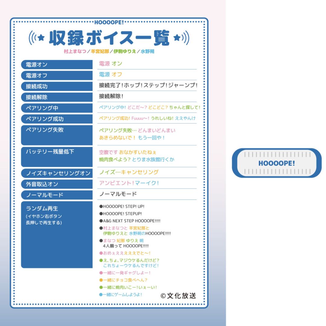- Suara panduan power on/off dari keempat anggota HOOOOPE!