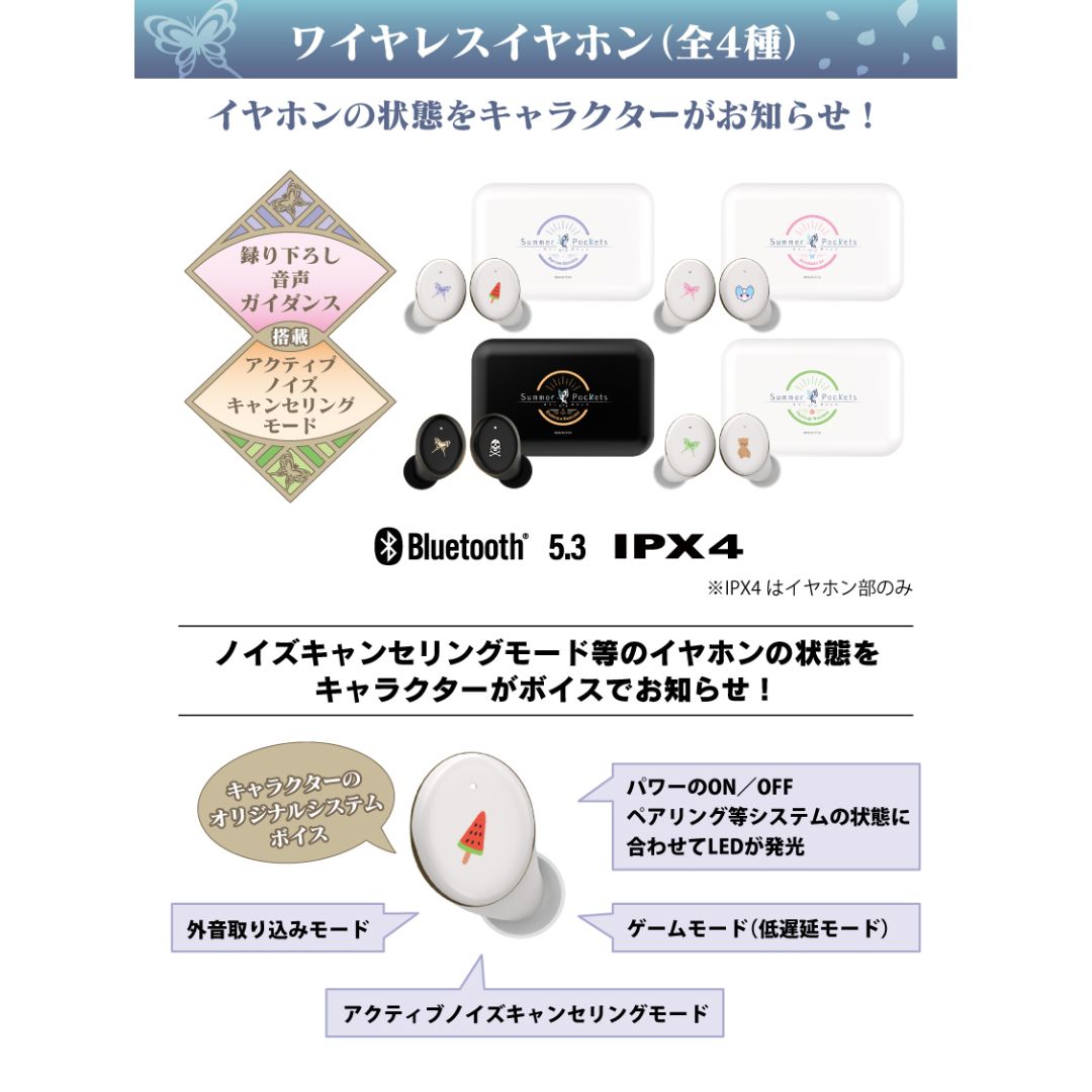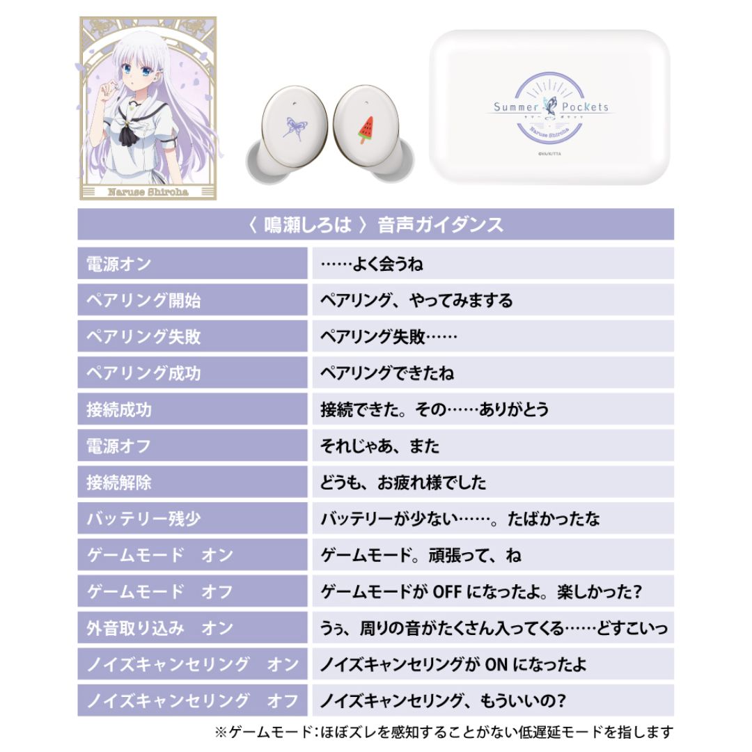 Nikmati sensasi berbeda dengan TWS Onkyo edisi khusus Summer Pockets yang dibalut suara eksklusif karakter Naruse Shiroha. Fitur-fitur premium seperti active noise cancelling, game mode low latency, hingga mode ambient membuatnya ideal untuk berbagai kebutuhan—baik menikmati cerita visual maupun gaming intens.