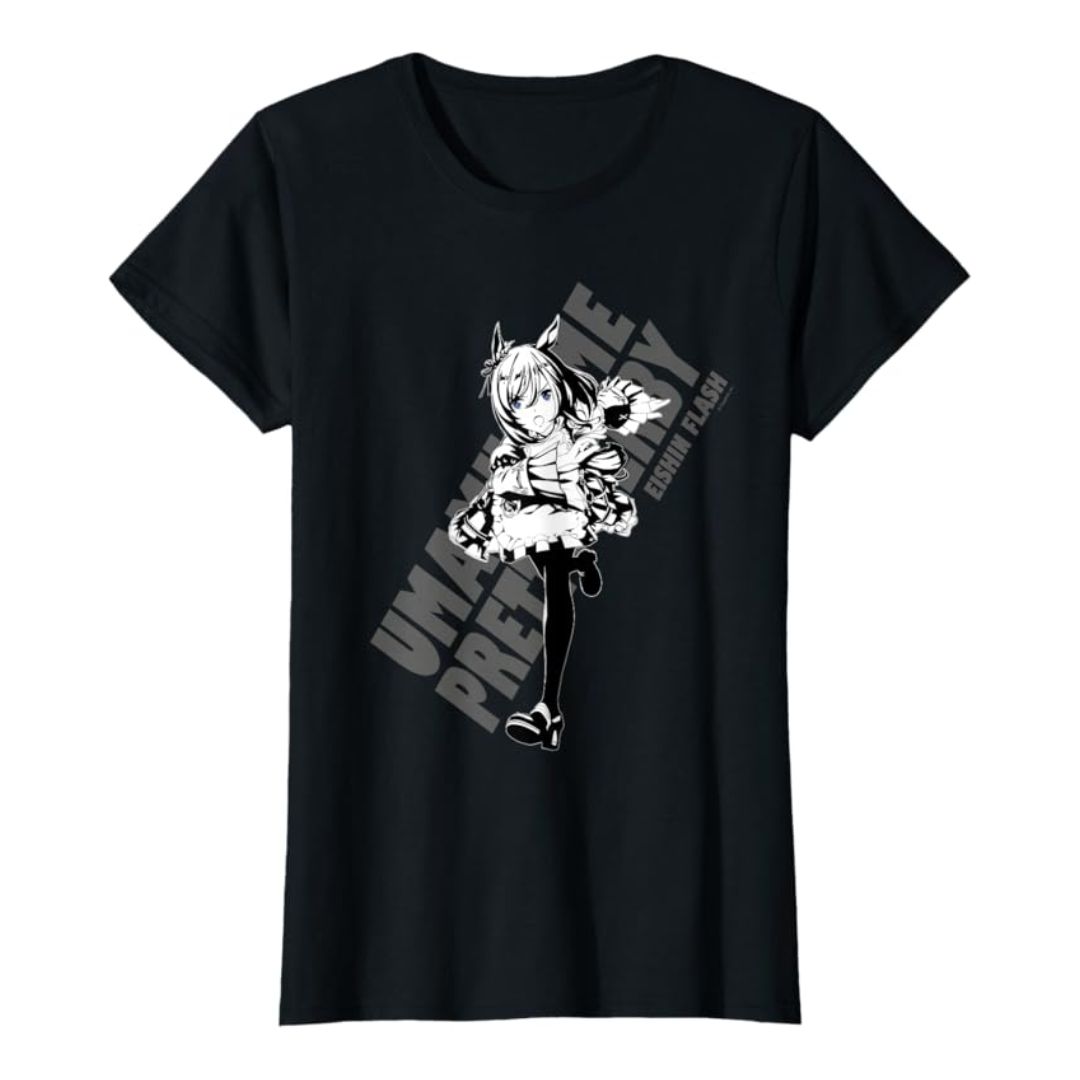 Kaos wanita Uma Musume Eishin Flash, stylish dan nyaman untuk gaya anime modern.
