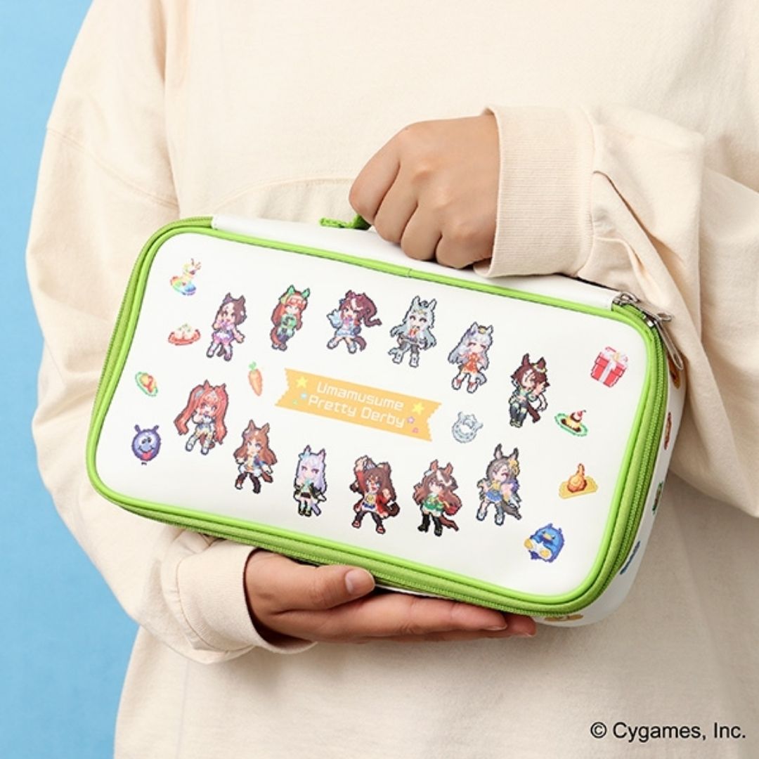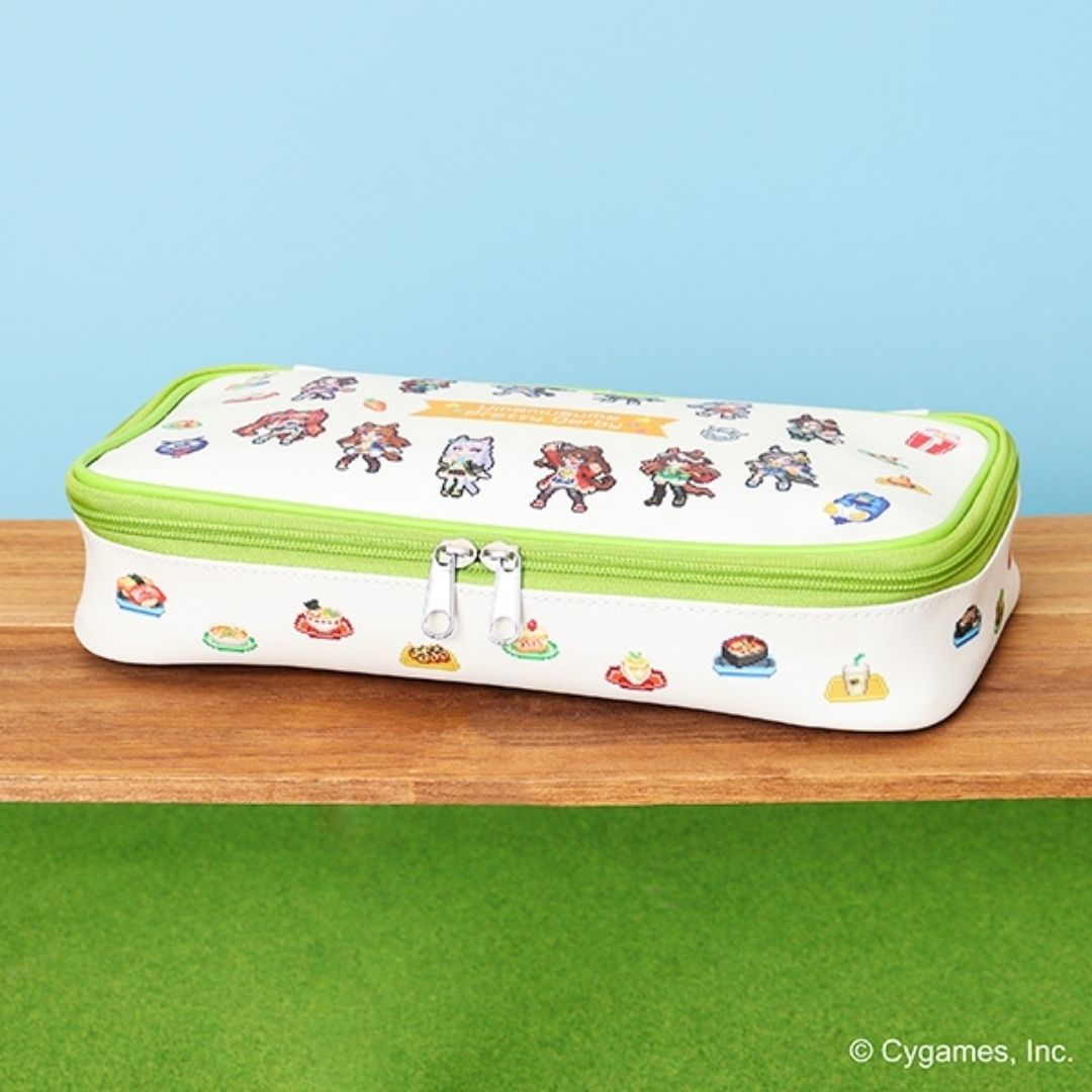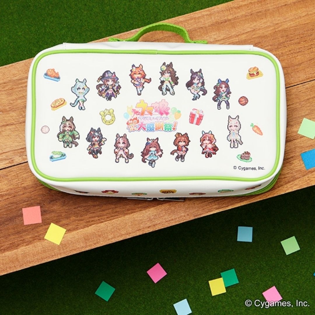 Pouch ini didesain dengan detail yang menarik, menggunakan visual utama dan karakter piksel dari “Uma Musume Pretty Derby Hot-blooded Messy Thanksgiving!”: