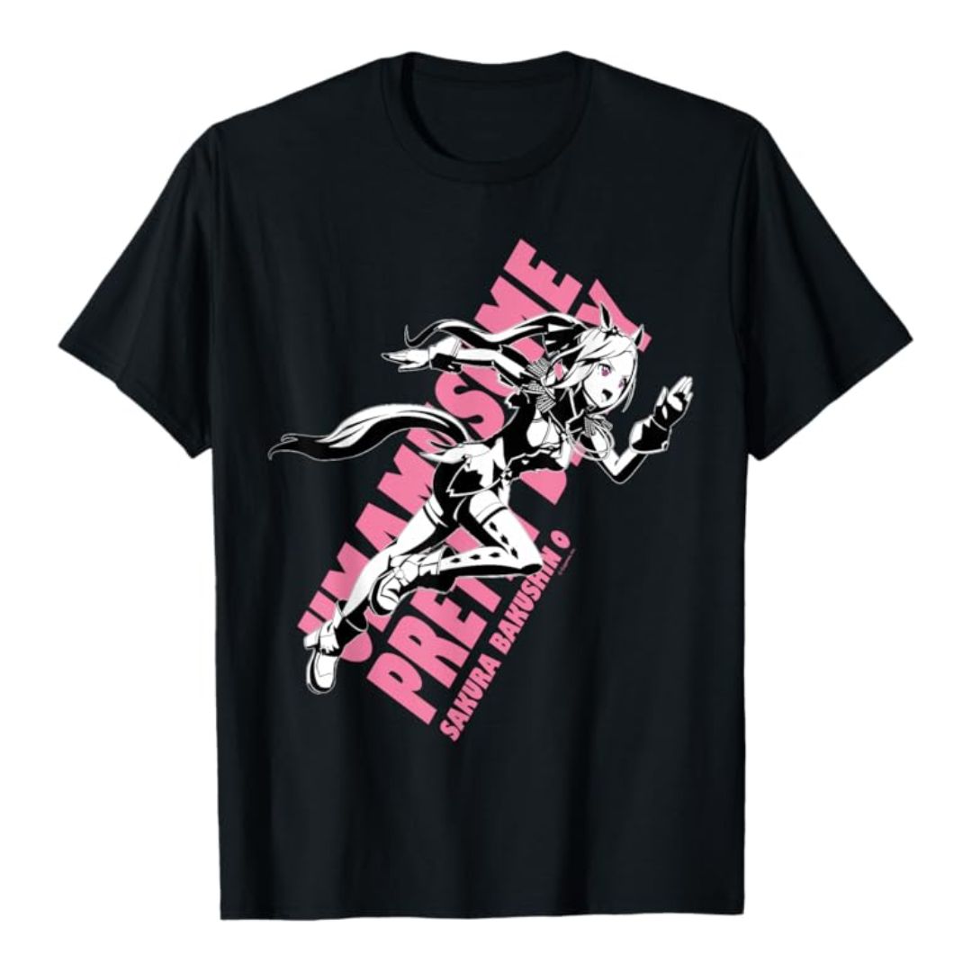 Kaos resmi Uma Musume dengan desain Sakura Bakushinoh stylish. Terbuat dari katun lembut, nyaman dipakai sehari-hari, cocok untuk hangout atau koleksi anime.