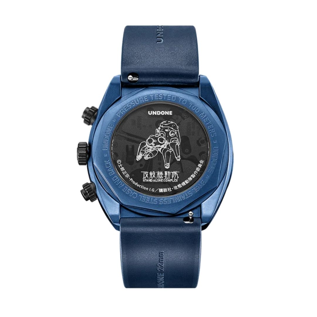 Undone X Tachikoma Blue adalah jam tangan edisi terbatas hasil kolaborasi UNDONE x Ghost in the Shell. Mengusung warna biru, kuning, dan abu-abu ikonik, desainnya menonjolkan detail mekanis futuristik.