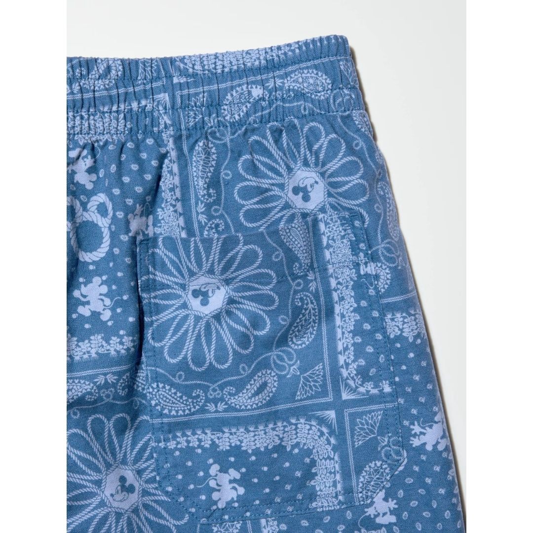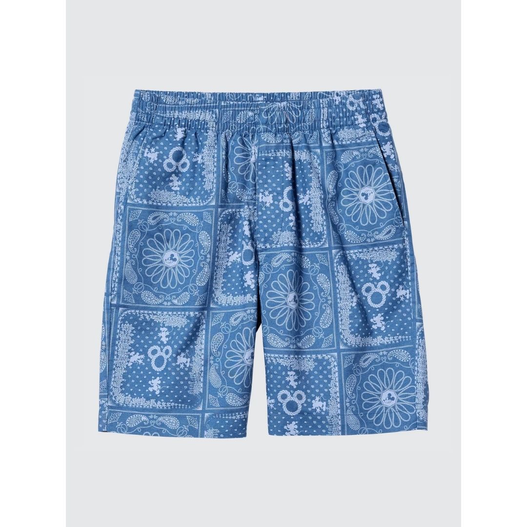 Uniqlo Disney in Blue Linen Blend Easy Shorts for Men – Celana Pendek Pria Katun Linen Motif Disney Navy