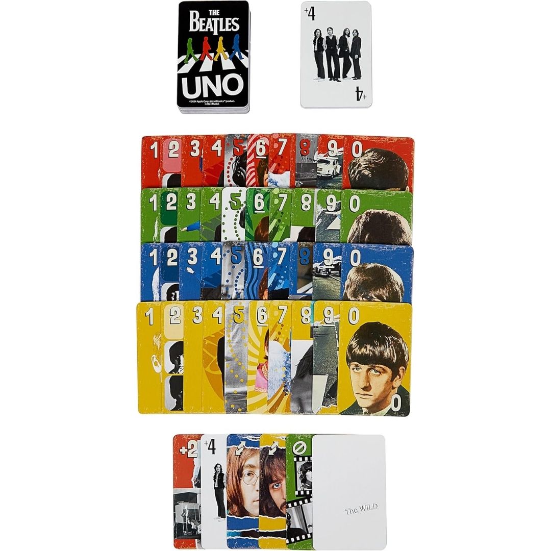 Merayakan 60 tahun penampilan ikonik The Beatles di Ed Sullivan Show (1964), edisi UNO Beatles Game ini menghadirkan koleksi kartu eksklusif bertema band legendaris asal Inggris tersebut. Dengan desain kartu berilustrasi klasik dan kualitas cetak premium, edisi ini wajib dimiliki oleh penggemar musik dan kolektor UNO di seluruh dunia.