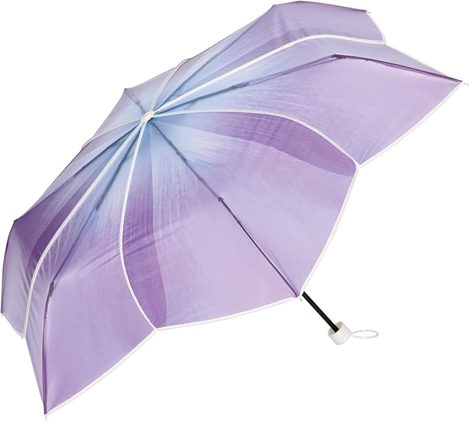 This vinyl umbrella is a stylish, brand-name folding umbrella for women. It features a cute hydrangea petal design, gradient piping, translucent details, a girly, feminine, casual look, and a photogenic, Instagram-worthy look. Available in off-white, blue, purple, light purple, and yellow-green. This manual-opening umbrella features a 54cm rib.