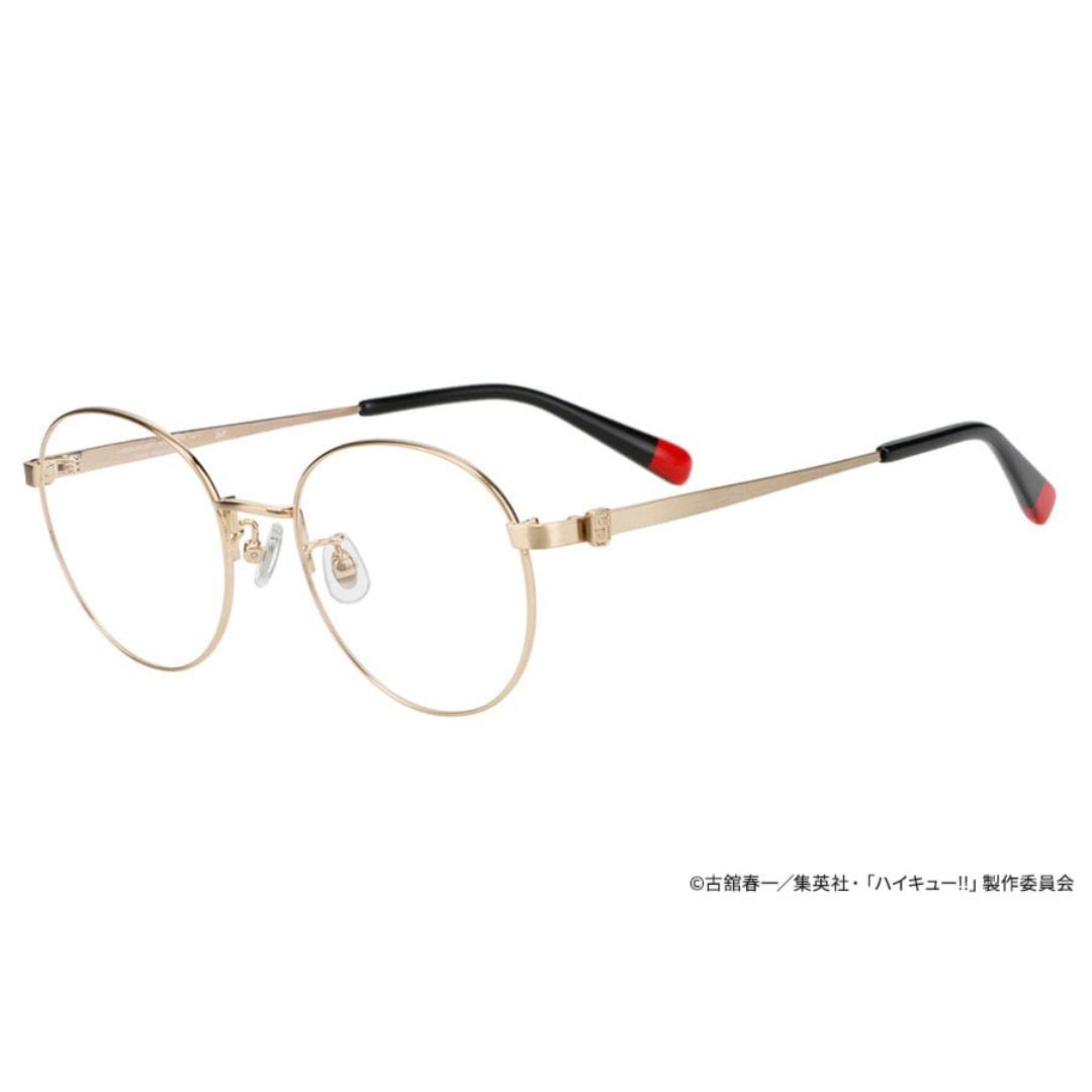 Frame kacamata ini hadir dengan desain Boston klasik berbahan metal tipis berwarna emas, terinspirasi langsung dari warna rambut khas Kenma. Sebagai penghormatan, angka “5” yang merupakan nomor punggungnya didesain sebagai bagian dari elemen visual di bagian belakang gagang kacamata.