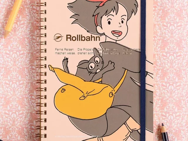 Bagi penggemar Kiki’s Delivery Service, ada dua desain buku catatan yang tak kalah menarik. Desain pertama menunjukkan Kiki dengan senyum lebar dan Jiji yang tampak agak gelisah, siap untuk petualangan sebagai kurir muda.