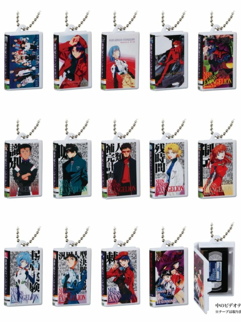 Koleksi miniatur VHS Neon Genesis Evangelion terdiri dari 15 mini VHS dengan rantai bola yang semuanya dapat digantungkan ke benda lain. Bentuknya seperti rilis VHS asli animenya, dan semuanya menampilkan pemeran serta karakter Evangelion. Titipers dapat menemukan karakter Shinji Ikari hingga Unit EVA-01 itu sendiri, bagian paling ikonik dari pertunjukan tersebut dapat dilihat pada kotak-kotak yang direproduksi dengan setia ini, yang dapat dibuka untuk memperlihatkan replika kaset VHS itu sendiri. Perhatian terhadap detail yang begitu sempurna akan memberikan rasa nostalgia yang mendalam.