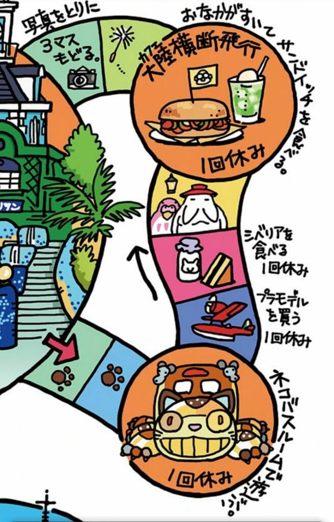 Selain menjelajahi Ghibli Park, papan permainan Ghibli Park ini juga mengajakmu bernostalgia dengan berbagai momen ikonik dari film-film Studio Ghibli. Titipers akan menemukan gambar biola Seiji dari Whisper of the Heart, jepit rambut mungil Arrietty, dan bahkan tataragami sakral dari Princess Mononoke yang menghiasi beberapa kotak. Namun, jangan lupa untuk memperhatikan detail-detail kecil, karena mungkin saja ada referensi tersembunyi yang hanya bisa dipahami oleh penggemar sejati Ghibli. Misalnya, kamu harus mengucapkan kata “hidup” saat melewati kotak komidi putar, sebuah referensi langsung pada soundtrack terkenal Howl’s Moving Castle berjudul “Merry-Go-Round of Life”.