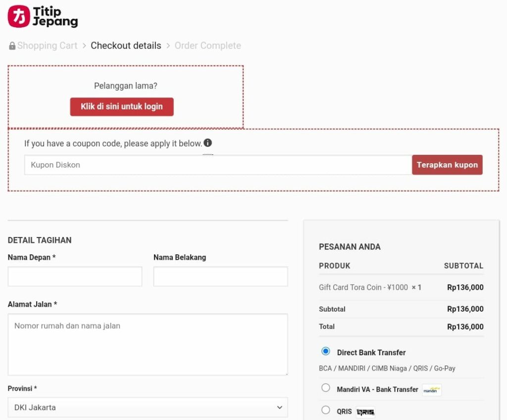 Menurut pengumuman resmi Fantia, mulai tanggal 21 Mei 2024 lalu, Fantia sudah tidak lagi menerima pembayaran menggunakan kartu kredit Visa dan Mastercard. Tapi, Titipers tidak perlu khawatir karena kalian bisa menggunakan TORA COIN sebagai ganti metode pembayarannya. Untuk mendapatkannya kalian bisa langsung menuju Tokyo Otaku Mode, yang pada dasarnya didukung oleh Fantia. Atau kalian juga dapat memesannya di TITIP JEPANG. Lalu, bagaimana cara membeli TORA COIN di TITIP JEPANG? Nah, berikut adalah alurnya.