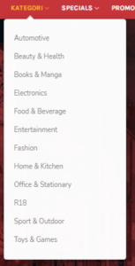 Kita akan cek satu-satu pilihan pada menu utama di website Titip Jepang dimulai dari menu Kategori. Kategori yang dimaksudkan di sini lebih mengarah ke kategori produk, sehingga bukan kategori artikel. Jika dilihat, hingga artikel ini ditulis ada dua belas kategori produk, di antaranya ada Automotive, Beauty & Health, Books & Manga, Electronics, Food & Beverages, Entertainment, Fashion, Home & Kitchen, Office & Stationary, R18, Sport & Outdoor, dan Toys & Games.